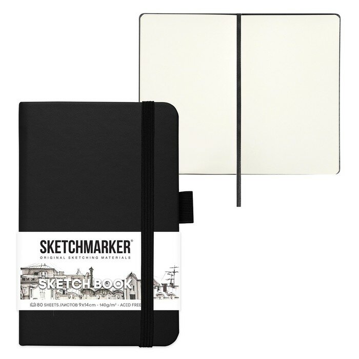 СохранитьСкетчбук для рисования и скетчинга SKETCHMARKER 140г/м2 9х14см. 160 страниц цвета слоновой кости, твердая обложка, цвет: черный интересное: