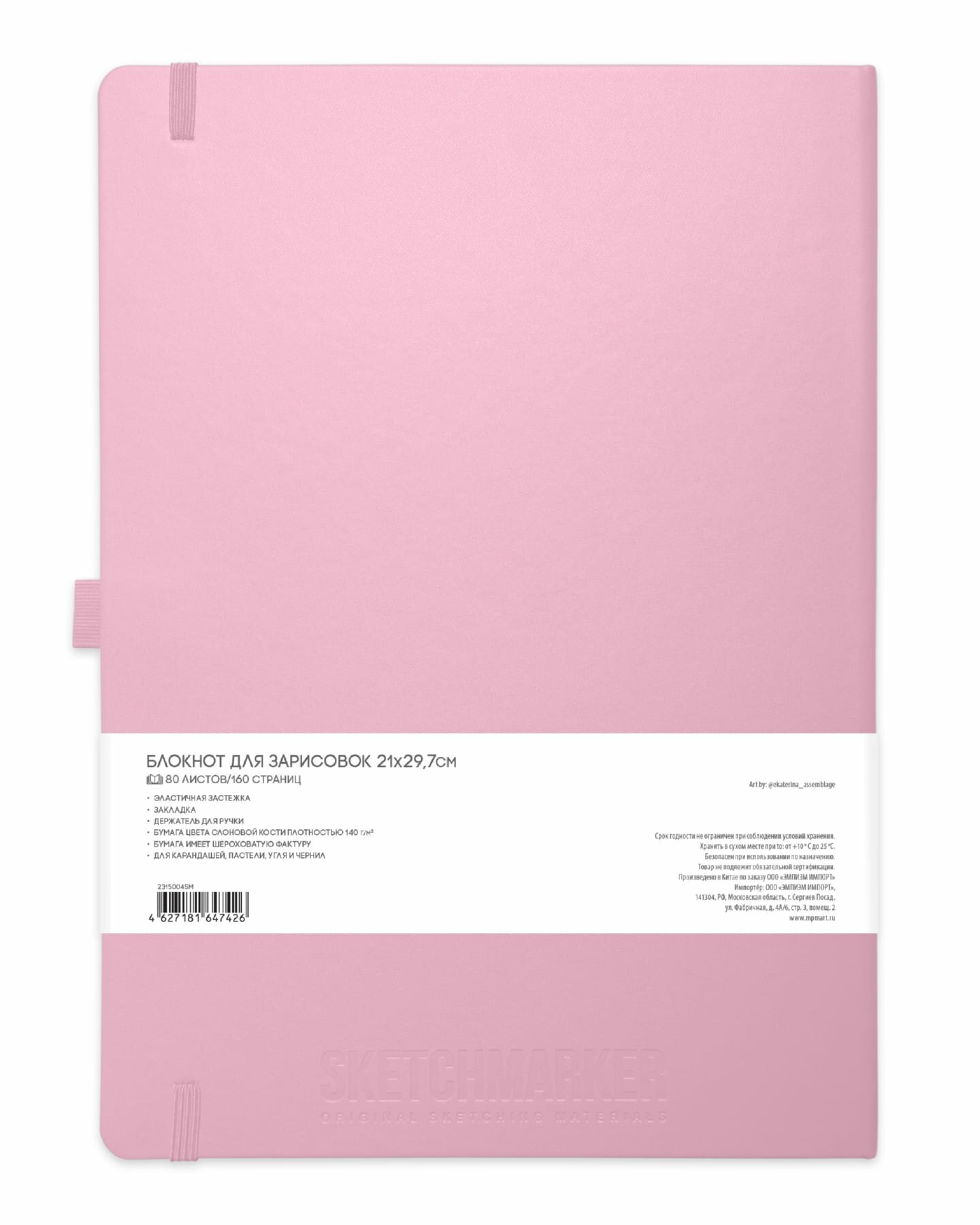 Купить Скетчбук для рисования и скетчинга SKETCHMARKER 140г/м2 21х29.7см. 160 страниц цвета слоновой кости, твердая обложка, цвет: розовый
