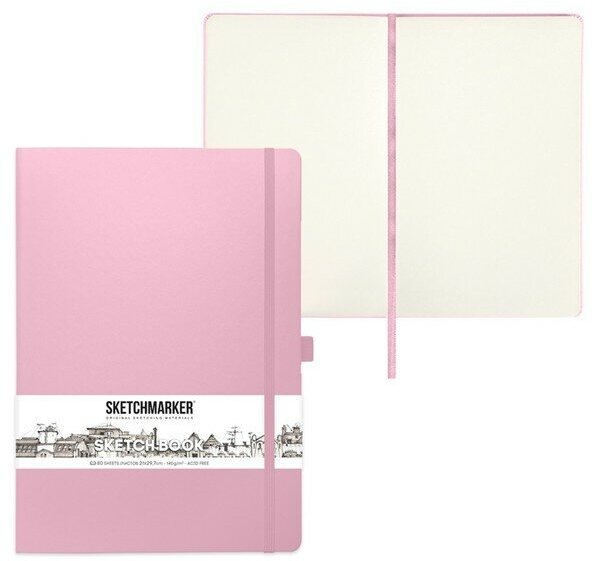 СохранитьСкетчбук для рисования и скетчинга SKETCHMARKER 140г/м2 21х29.7см. 160 страниц цвета слоновой кости, твердая обложка, цвет: розовый интересное: