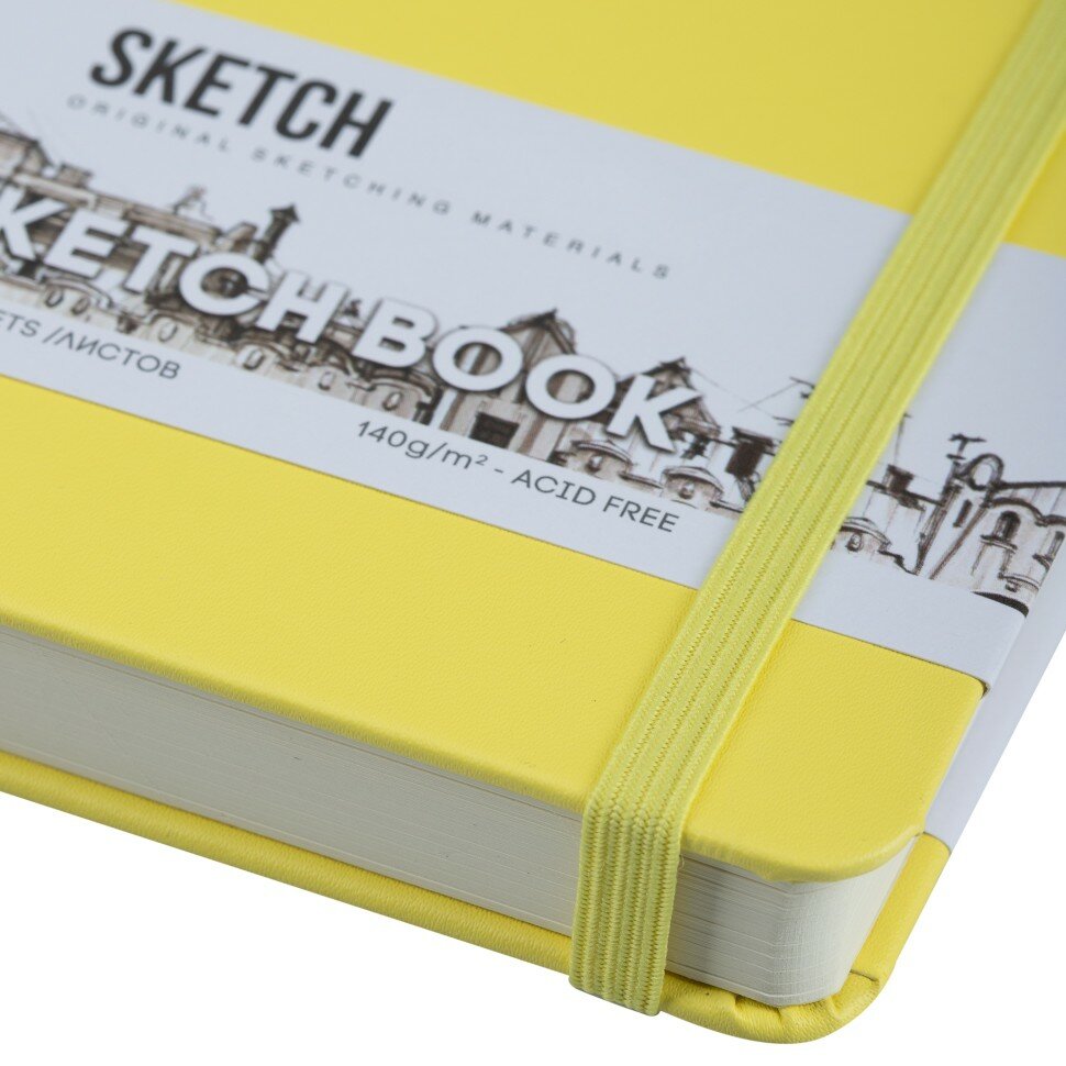 Скетчбук для рисования и скетчинга SKETCHMARKER 140г/м2 21х29.7см. 160 страниц цвета слоновой кости, твердая обложка, цвет: лимонный