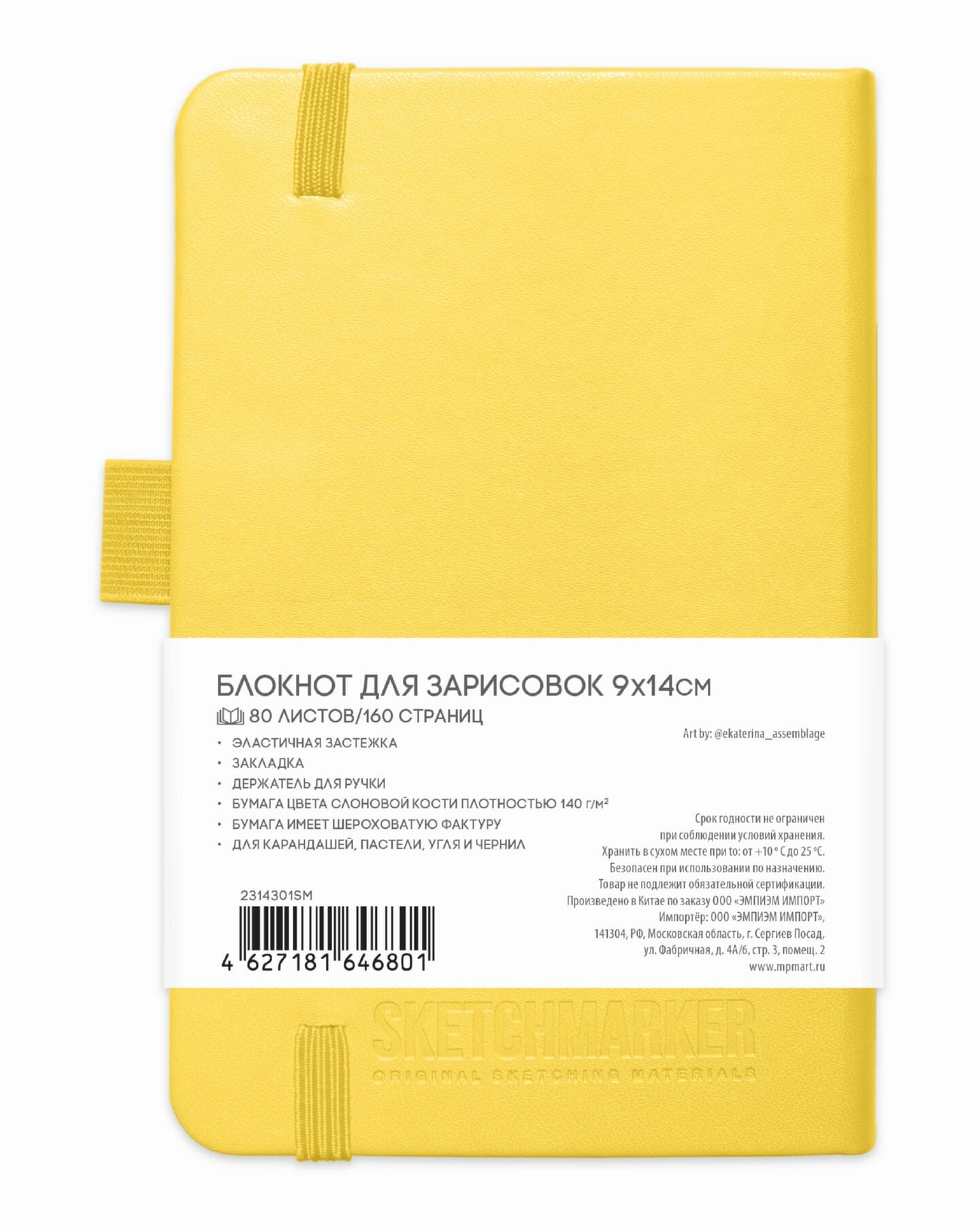 Купить Скетчбук для рисования и скетчинга SKETCHMARKER 140г/м2 9х14см. 160 страниц цвета слоновой кости, твердая обложка, цвет: лимонный