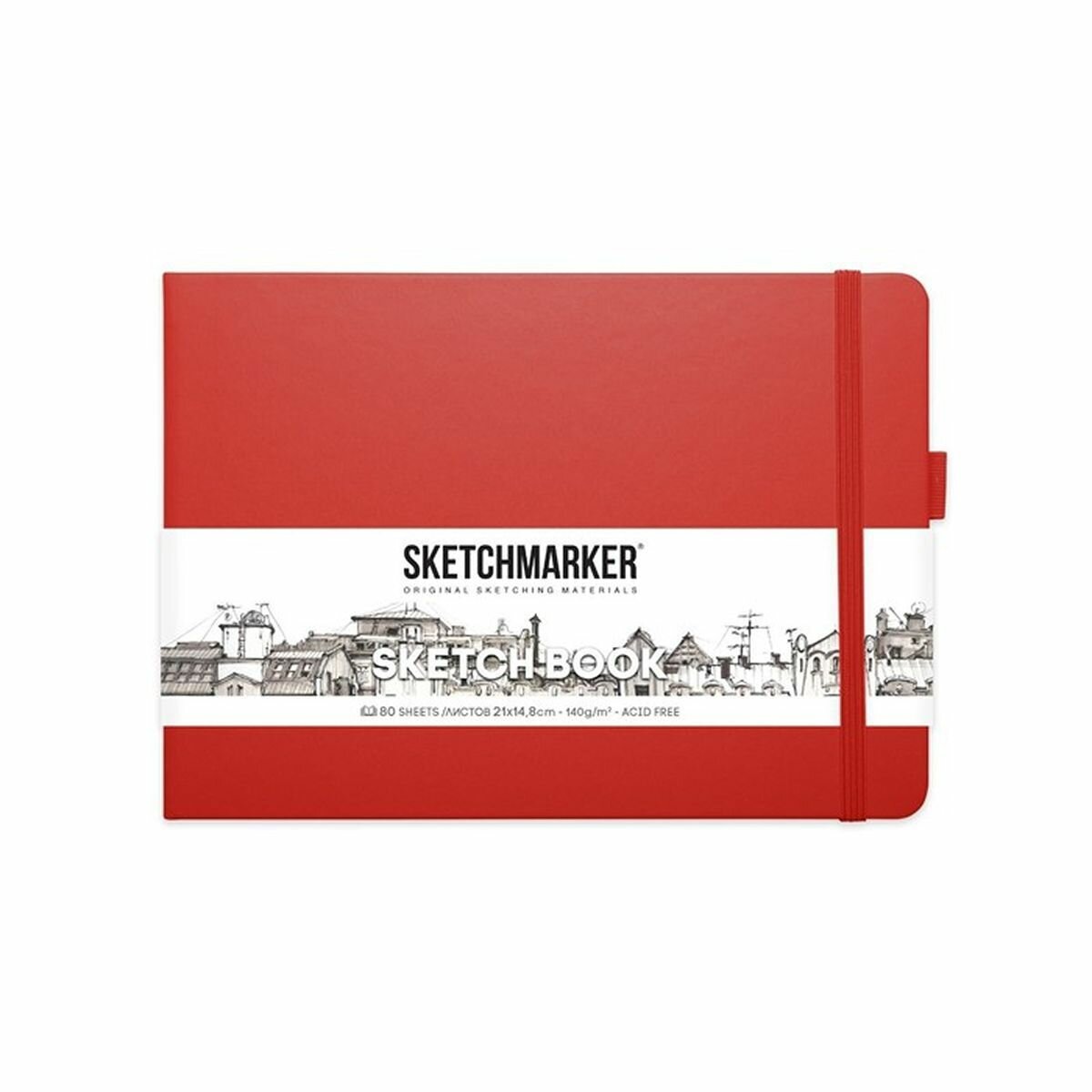 Купить Скетчбук для рисования и скетчинга SKETCHMARKER 140г/м2 21х14.8см. 160 страниц цвета слоновой кости, твердая обложка, цвет: красный