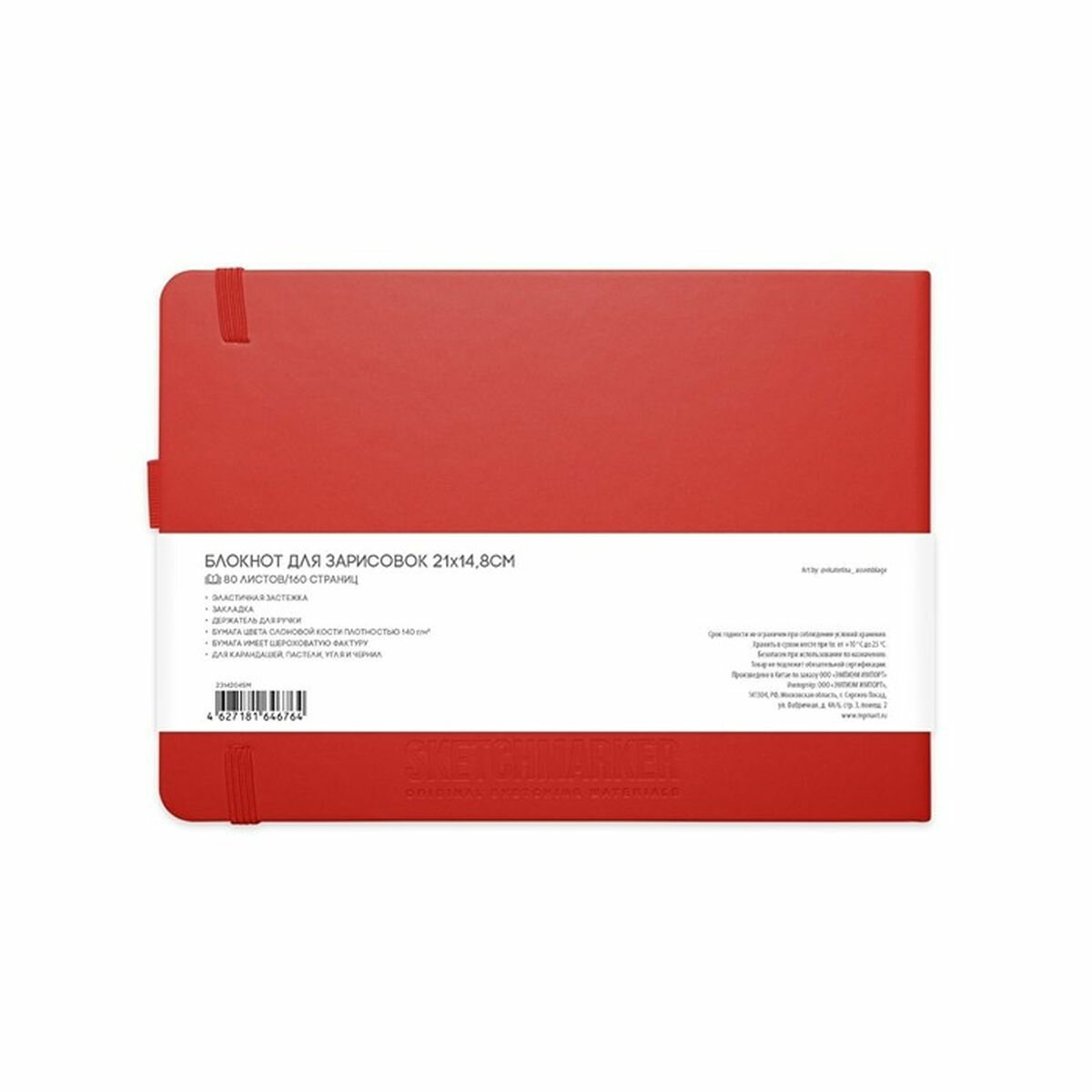 Скетчбук для рисования и скетчинга SKETCHMARKER 140г/м2 21х29.7см. 160 страниц цвета слоновой кости, твердая обложка, цвет: красный