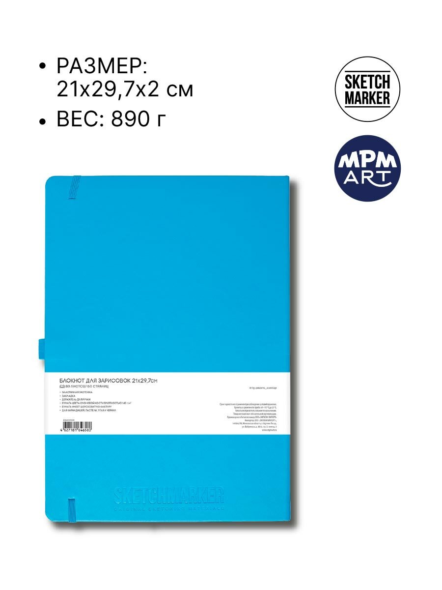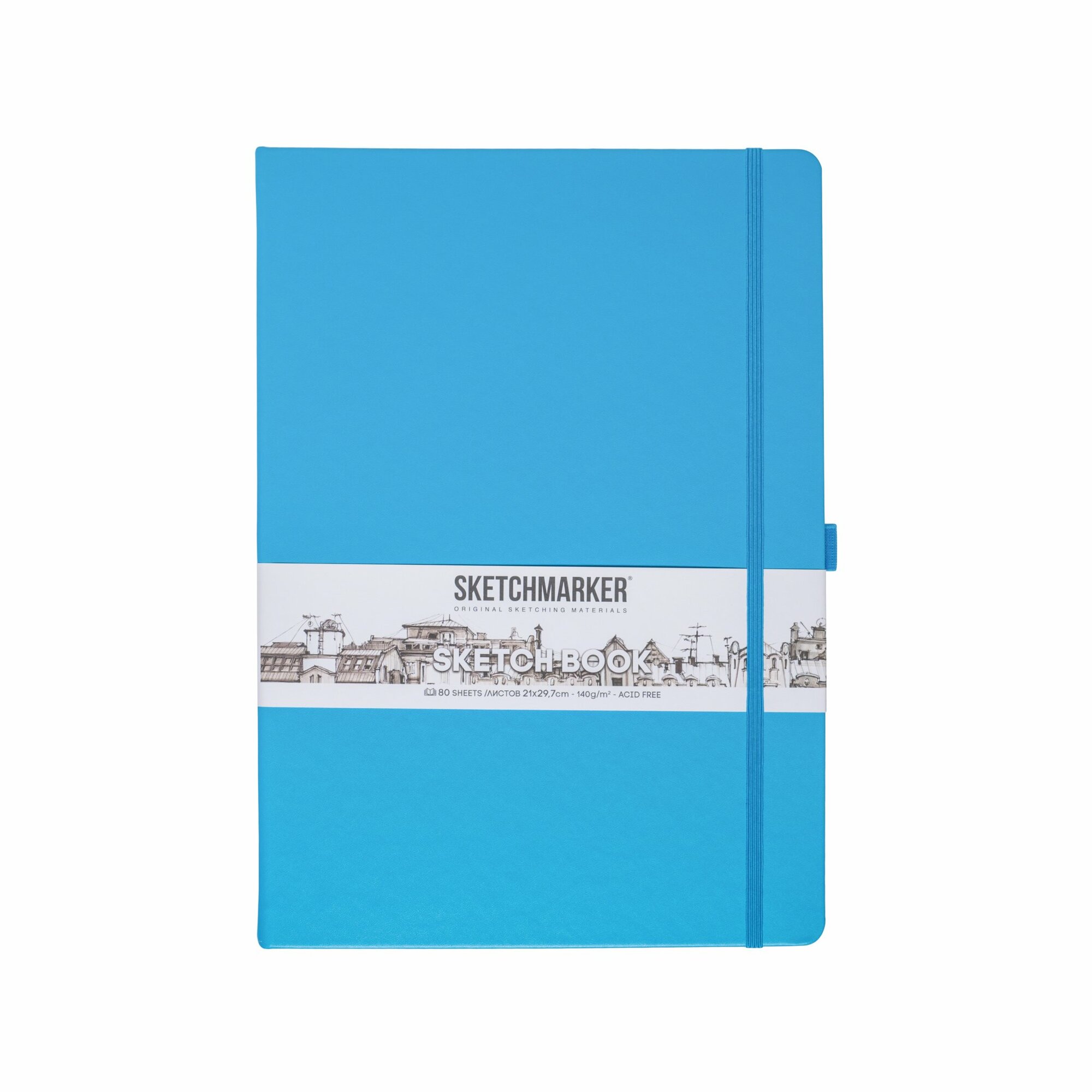 Скетчбук для рисования, блокнот для скетчинга SKETCHMARKER Sketchmarker 140г/кв. м 21*29.7см 80л твердая обложка, цвет Небесно-голубой