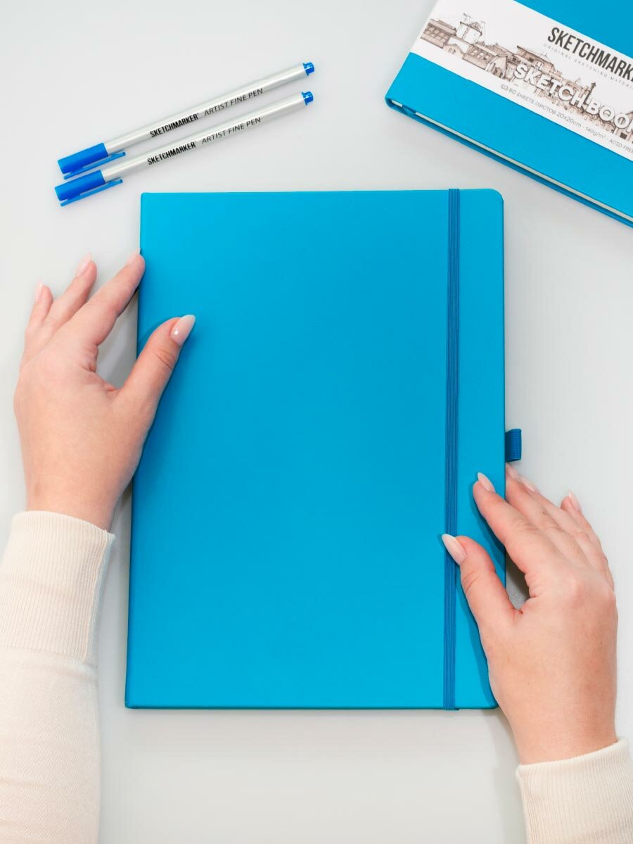 Купить Скетчбук для рисования, блокнот для скетчинга SKETCHMARKER Sketchmarker А4 140г/кв.м 21*29.7см 80л твердая обложка. цвет Синий Карибский