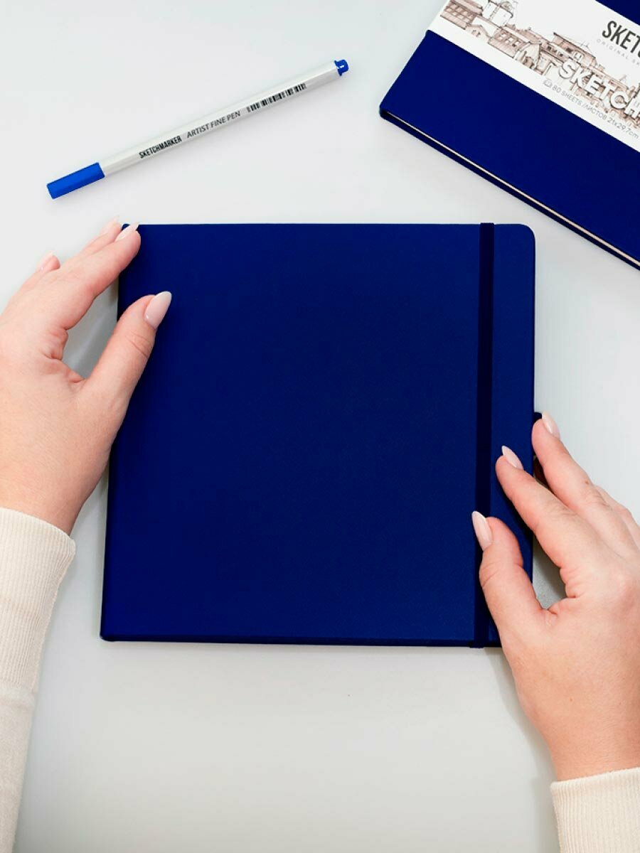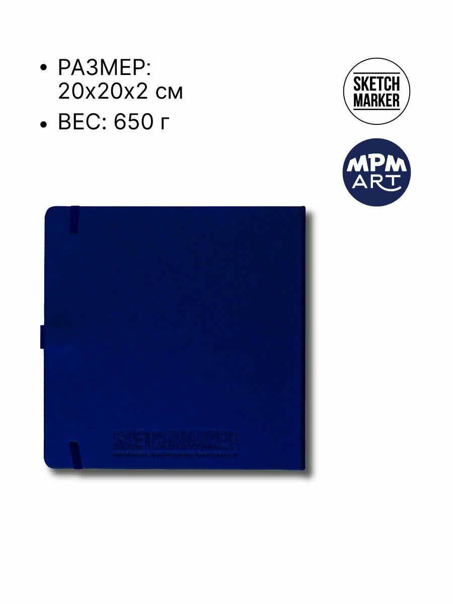 Скетчбук для рисования квадратный, блокнот для скетчинга SKETCHMARKER Sketchmarker 140г/кв. м 20*20cм 80л твердая обложка, цвет Королевский синий