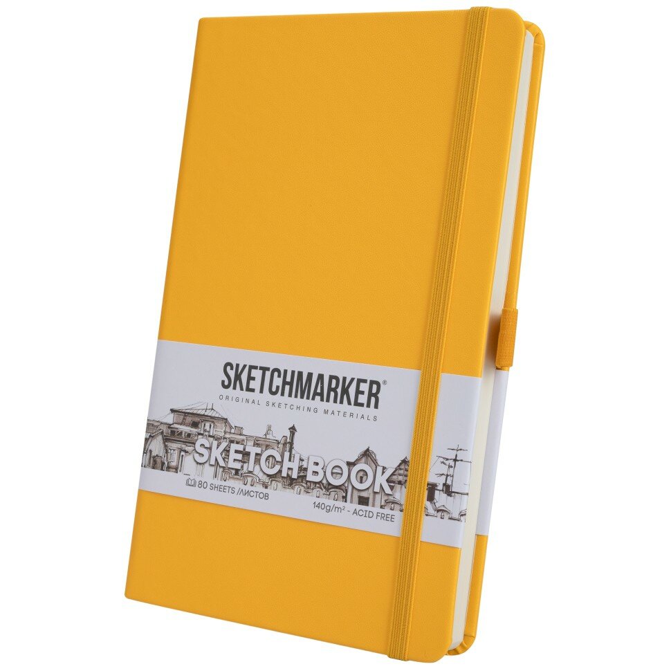 Скетчбук для рисования и скетчинга SKETCHMARKER 140г/м2 21х29.7см. 160 страниц цвета слоновой кости, твердая обложка, цвет: лимонный
