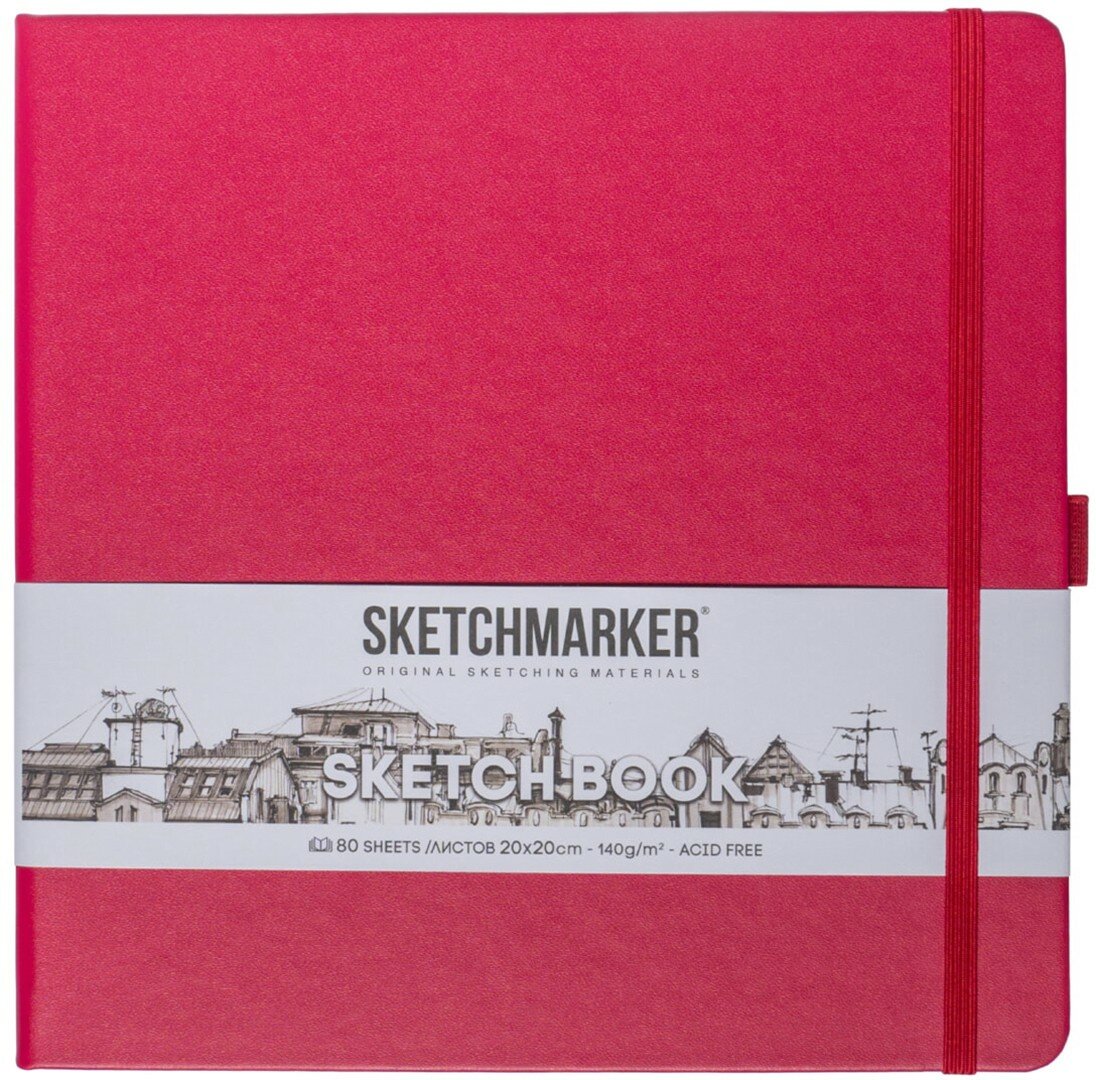 Скетчбук для рисования квадратный, блокнот для скетчинга SKETCHMARKER Sketchmarker 140г/кв. м 20*20cм 80л твердая обложка, цвет Маджента