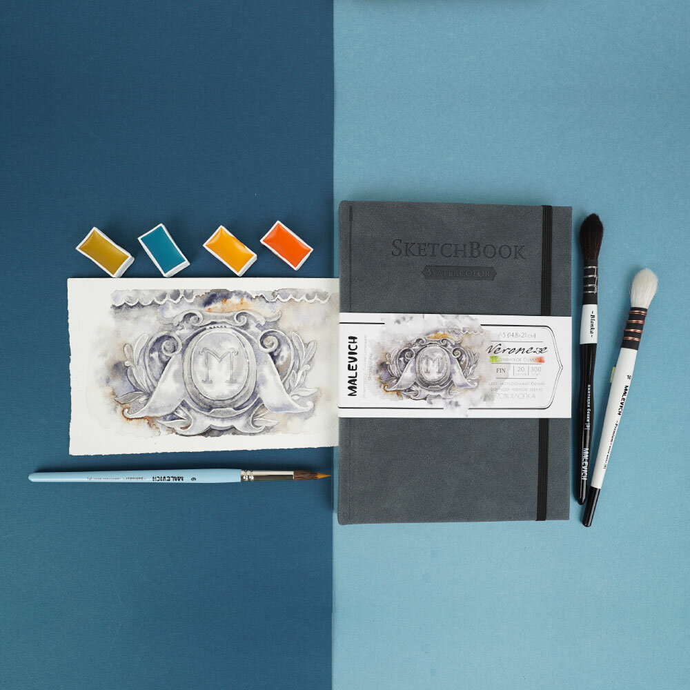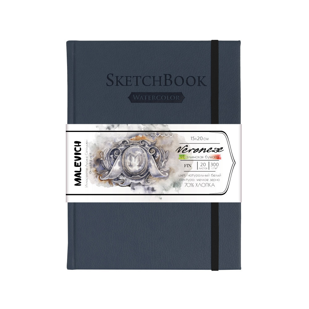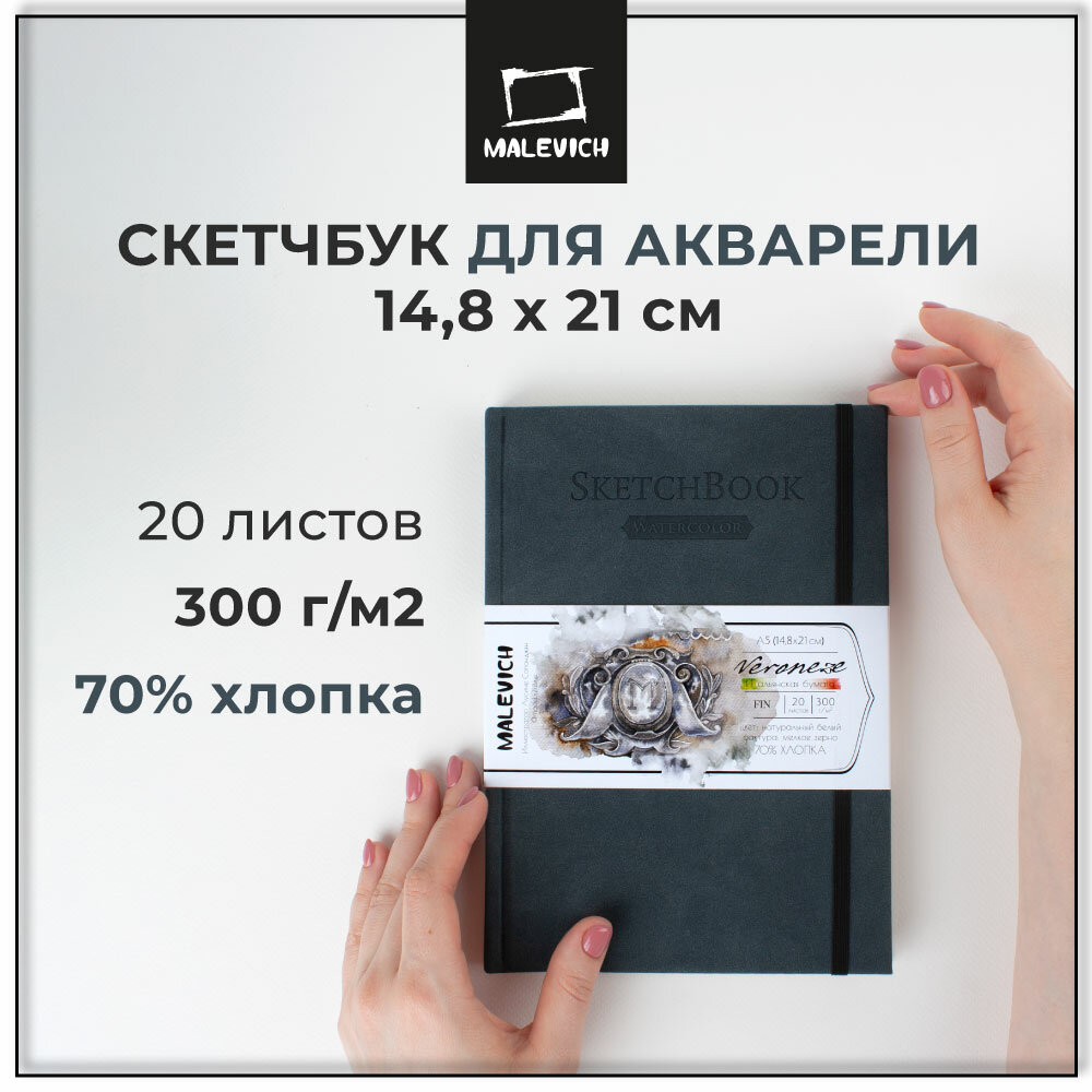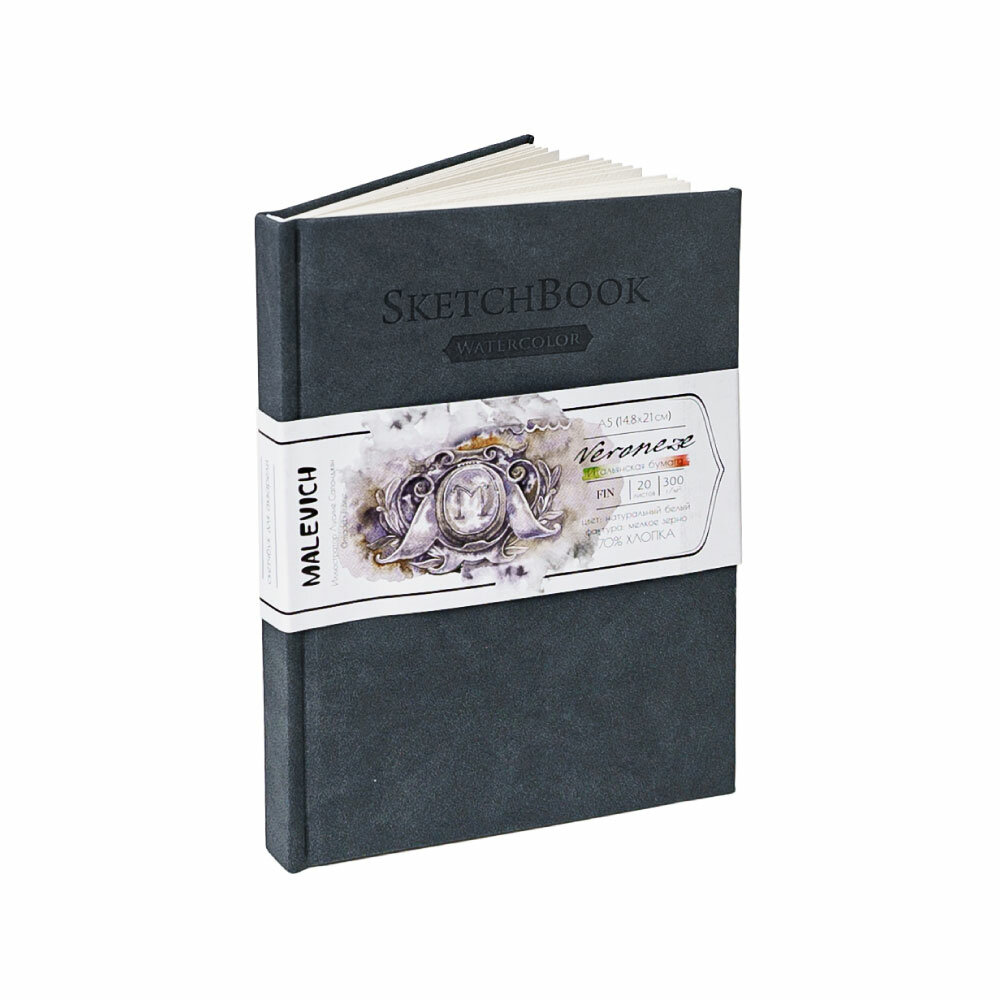 Скетчбук Малевичъ для акварели Veroneze, 70% хлопок 300 г/м, серый, А4, 20л