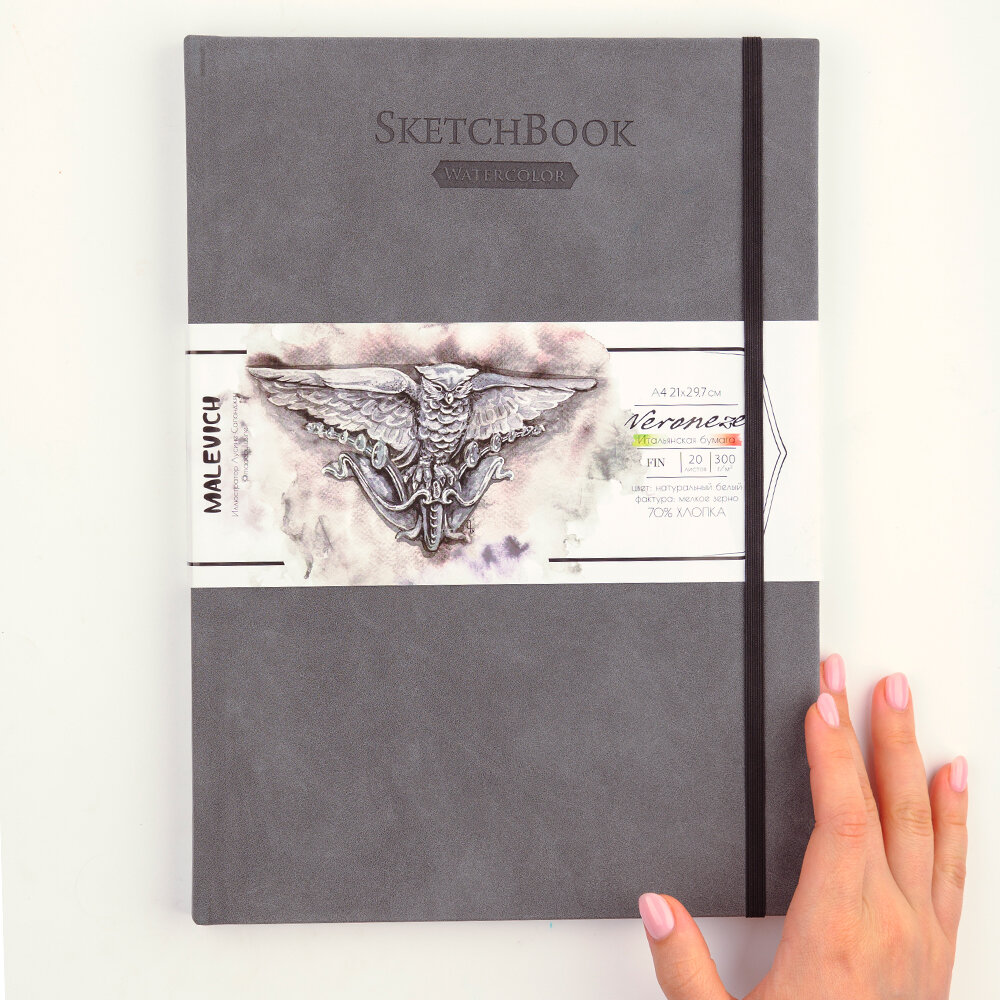 СохранитьСкетчбук Малевичъ для акварели Veroneze, 70% хлопок 300 г/м, серый, А4, 20л интересное: