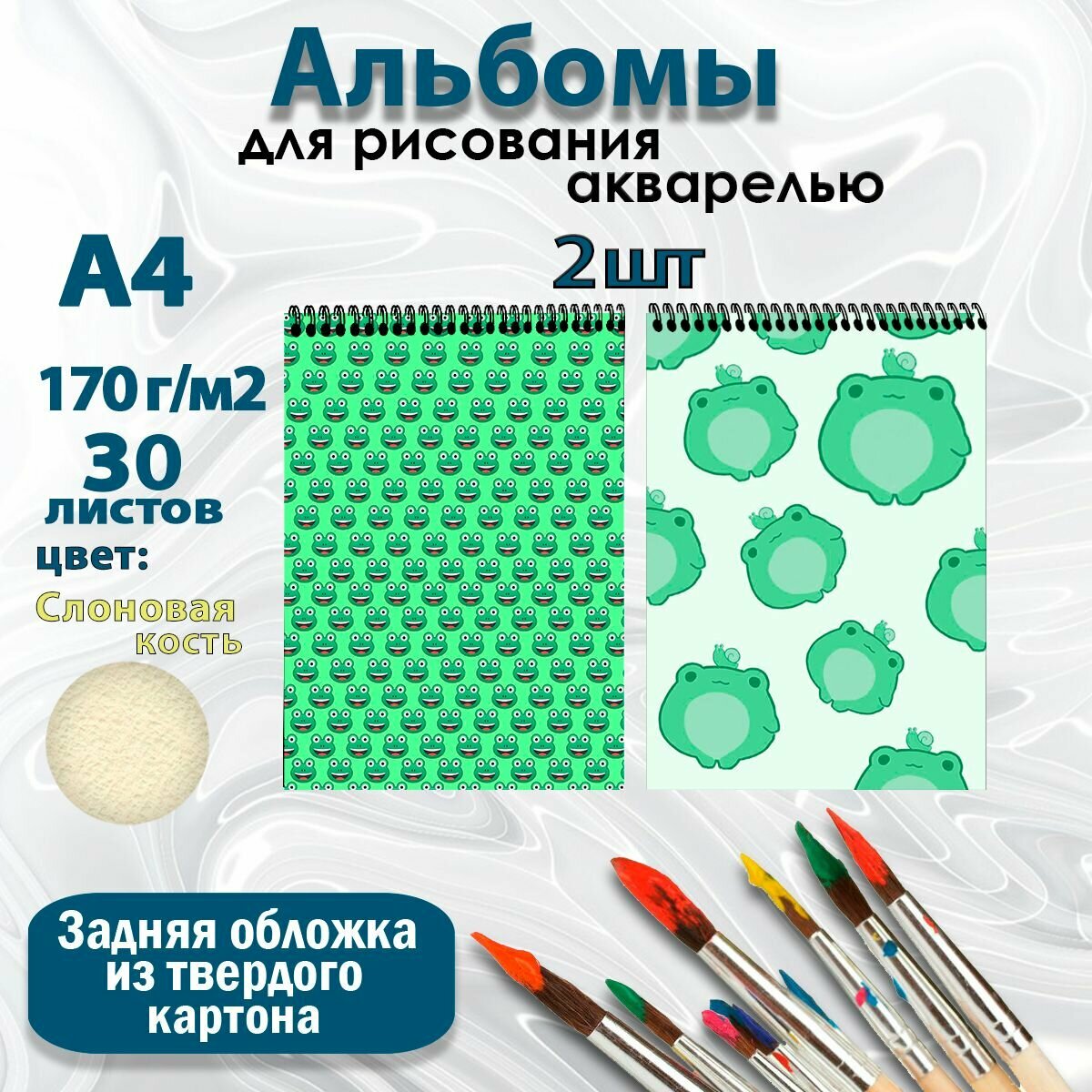 Альбом для рисования, для акварели А4 на жесткой подложке Лягушки, 30 листов цвета слоновая кость. Набор альбомов -2шт