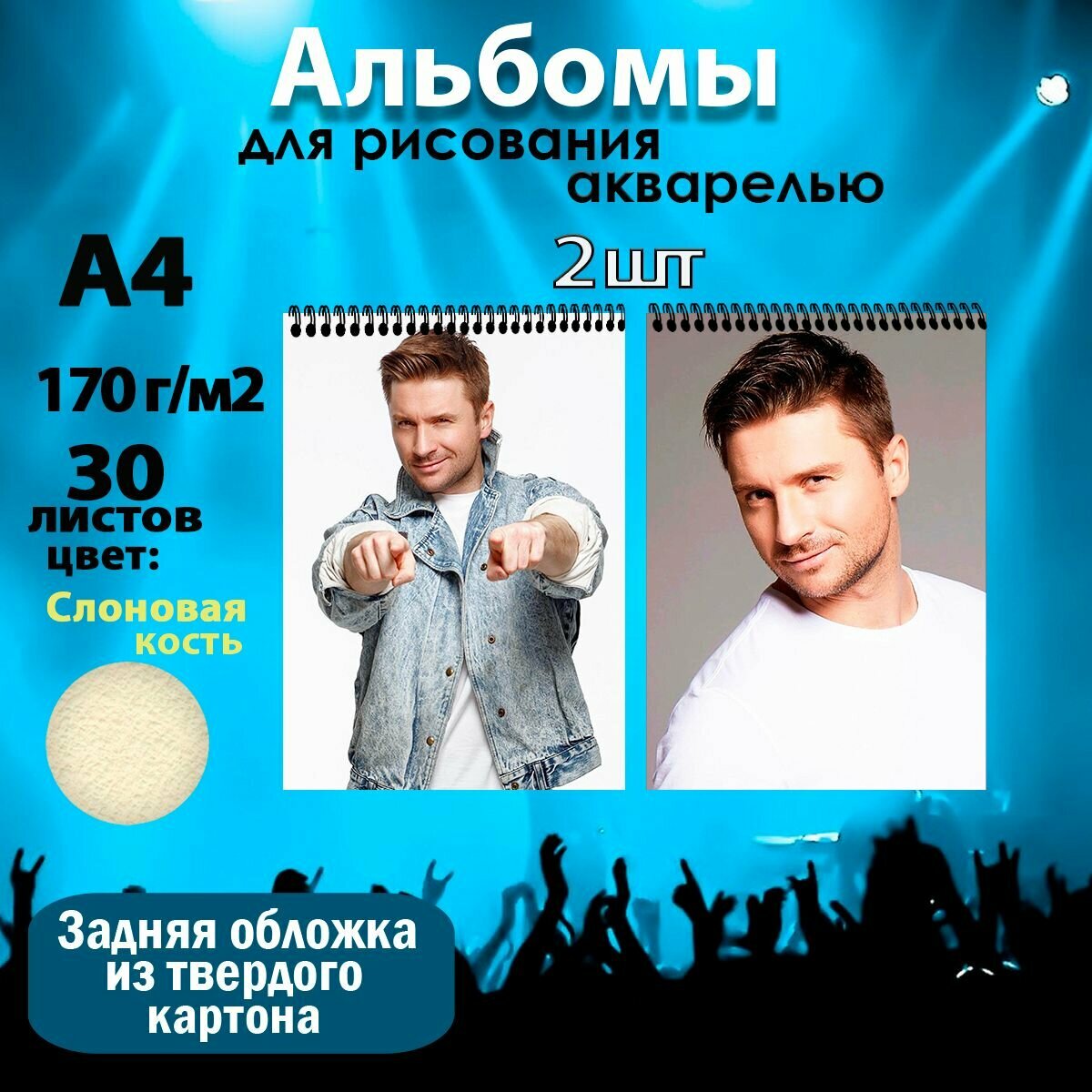Купить Альбом для акварели, для рисования А4 на жесткой подложке Сергей Лазарев, 30 листов цвета слоновая кость. Набор альбомов -2шт
