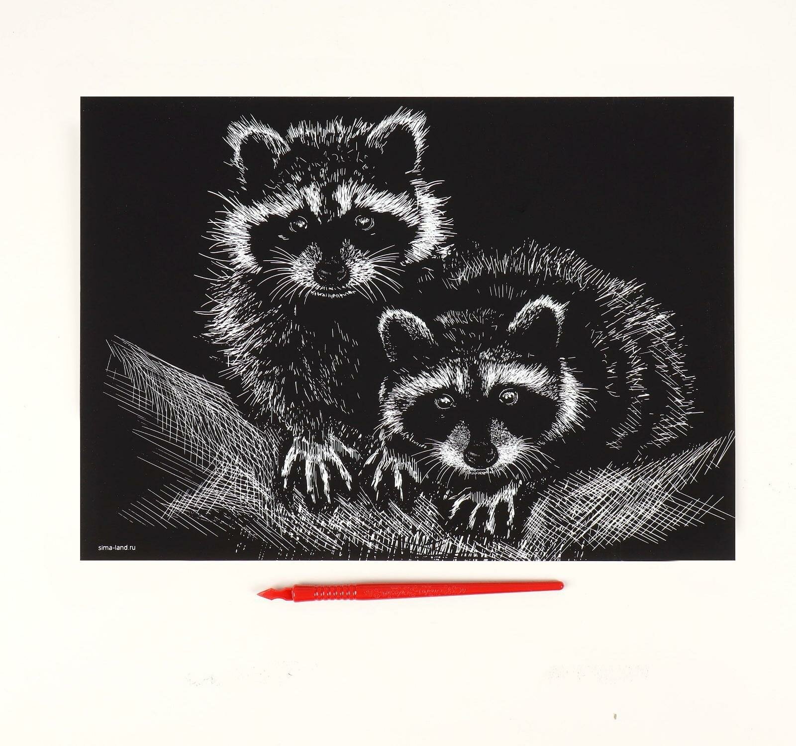 Гравюра "Еноты" с металлическим эффектом А4 - серебро + штихель интересное: