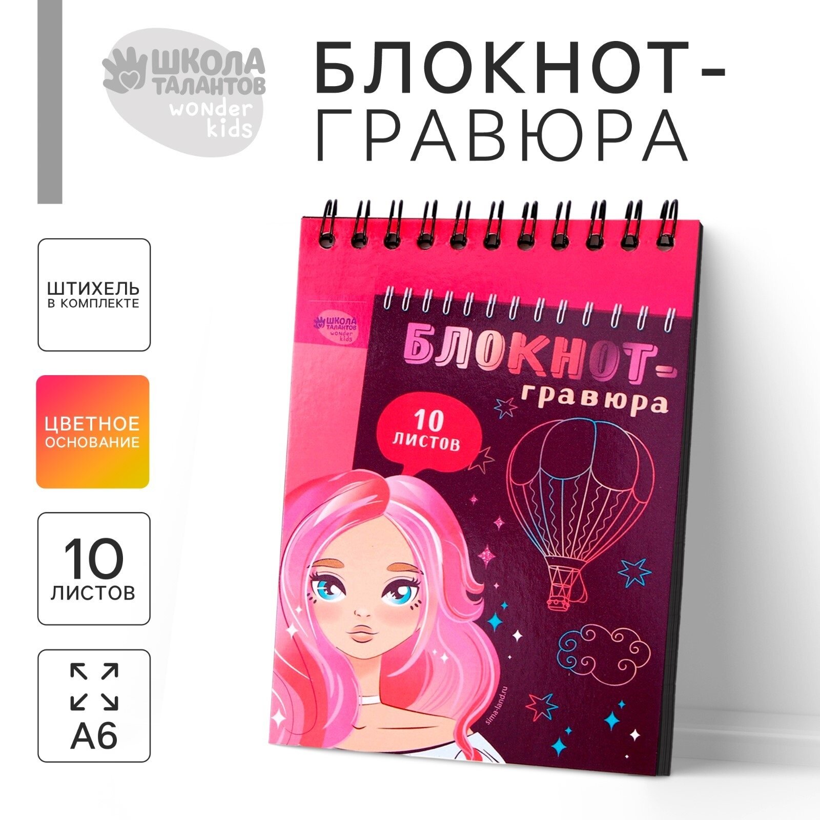 Купить Гравюра блокнот детский Beautiful girl, 10 листов, штихель, для девочки, цвет розовый/фиолетовый, Школа талантов