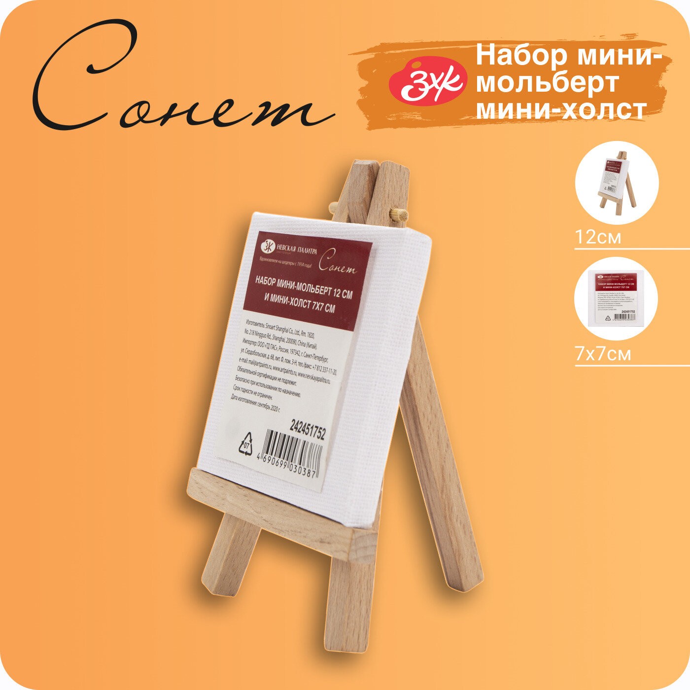Купить Мольберт (12 см) и мини-холст (7х7 см) Невская палитра Сонет 242451752