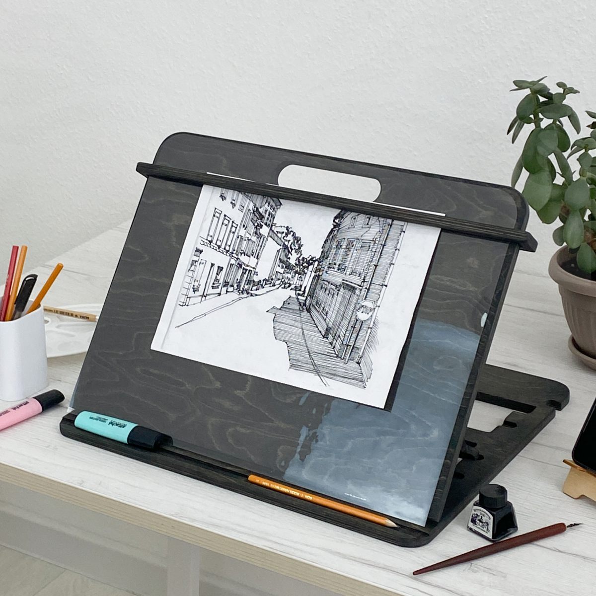 Купить Мольберт для рисования настольный А4, черный венге, с защитной накладкой