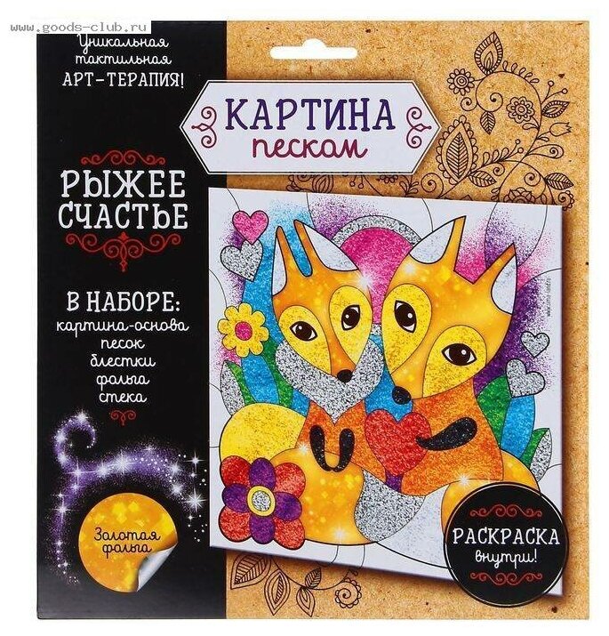 Картина песком "Рыжее счастье" + 9 цветов песка по 4 грамма, блестки, стек интересное: