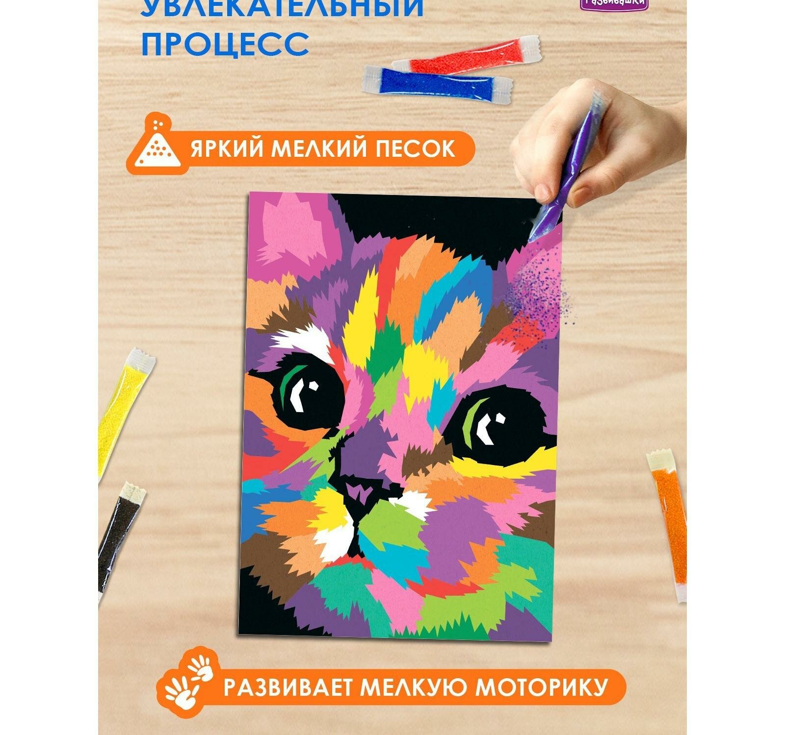 Фреска из цветного песка А4 Игривый котёнок С1927 Развивашки 9934210 . интересное: