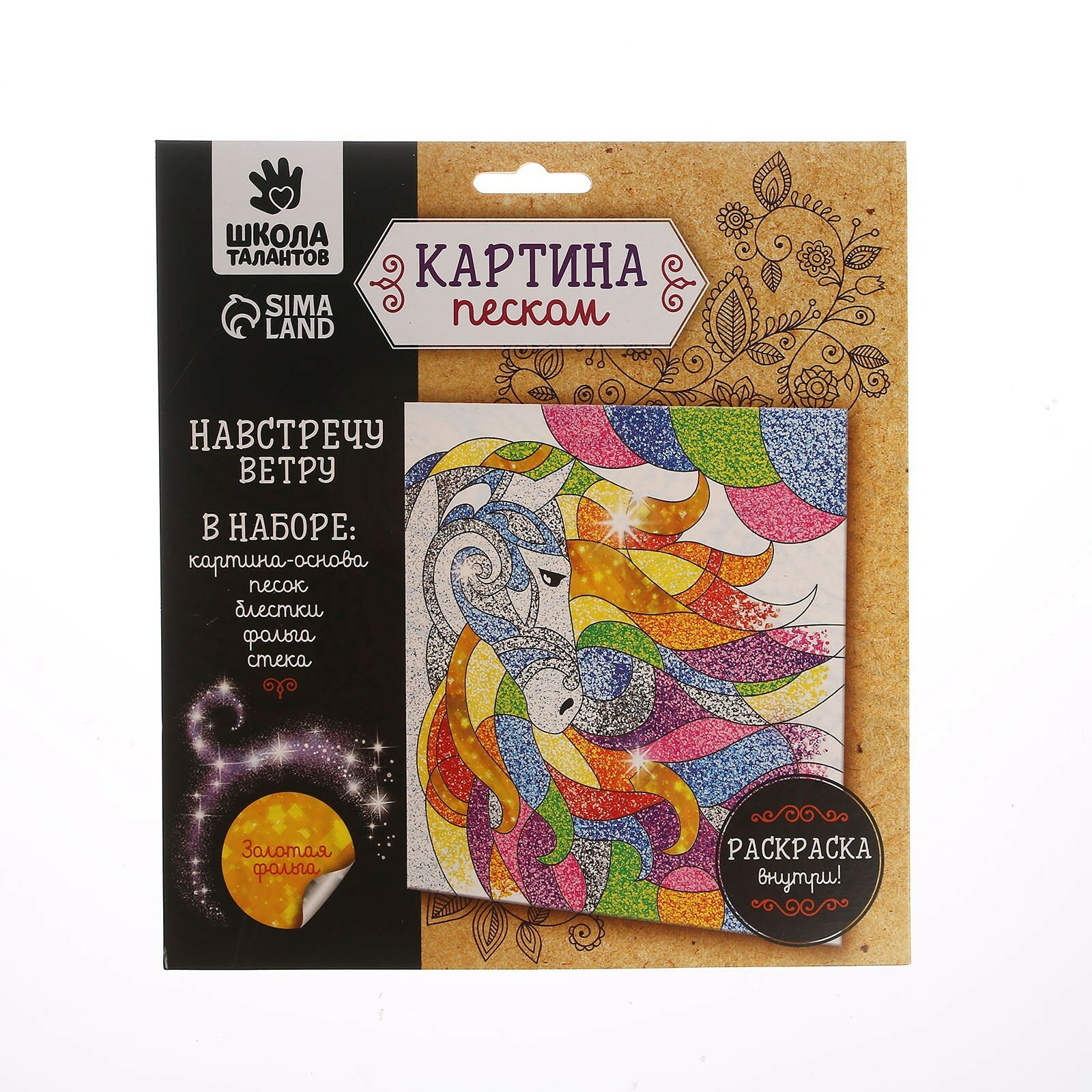 Фреска песком Школа талантов "Лошадь", 9 цветов песка по 4 гр, блестки, стека