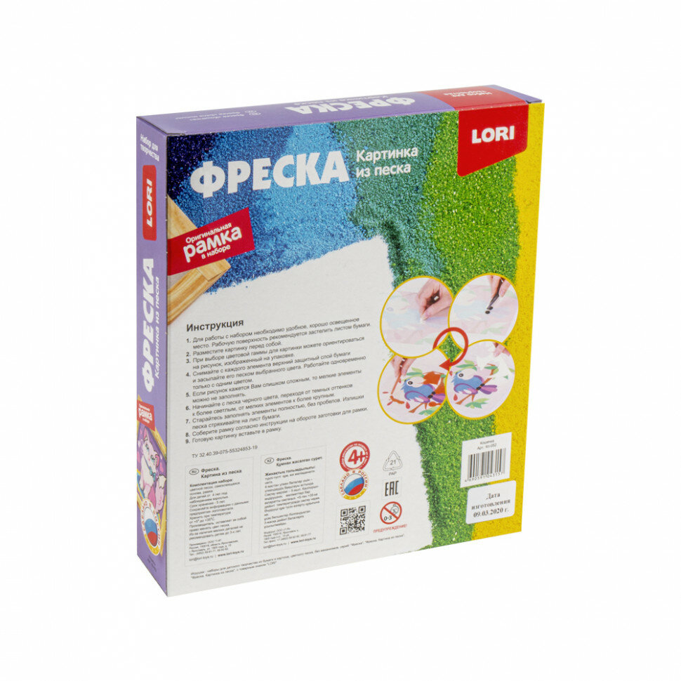 | Комплектация | основа, рамка, песок 7 цветов |