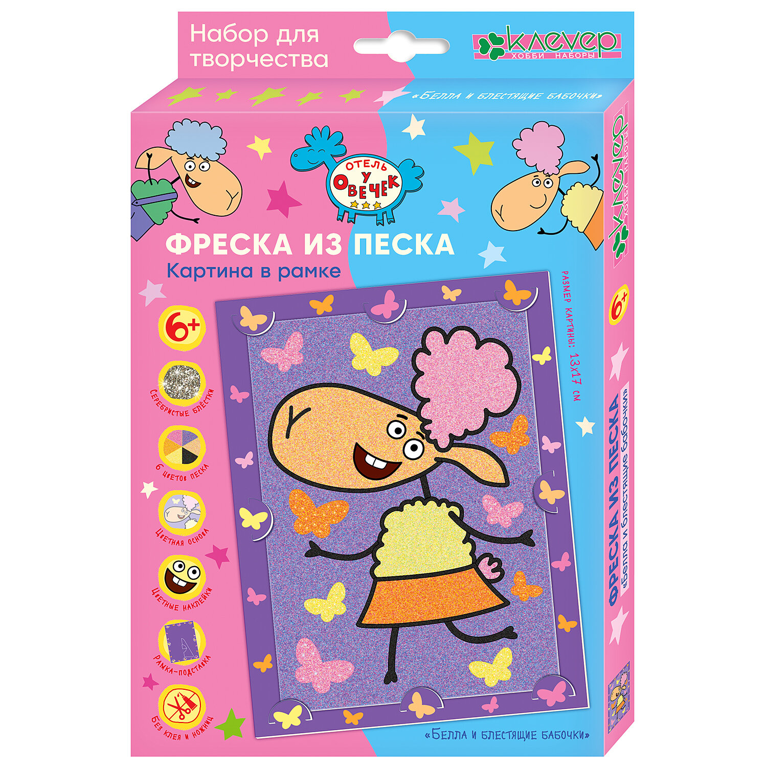 Набор для картины "Отель у овечек. Белла и блестящие бабочки" (фреска), в к 24,3x14x1,5 см интересное: