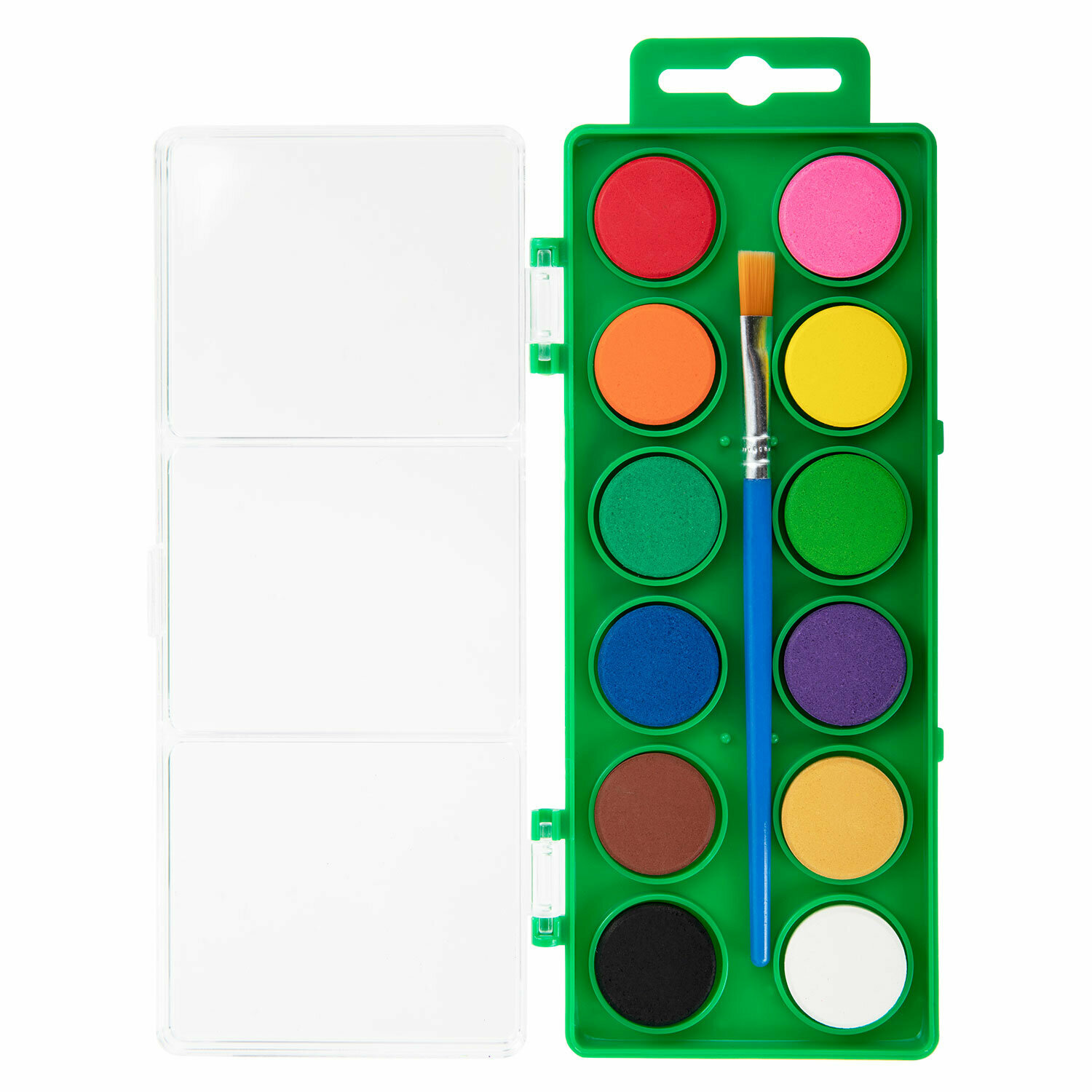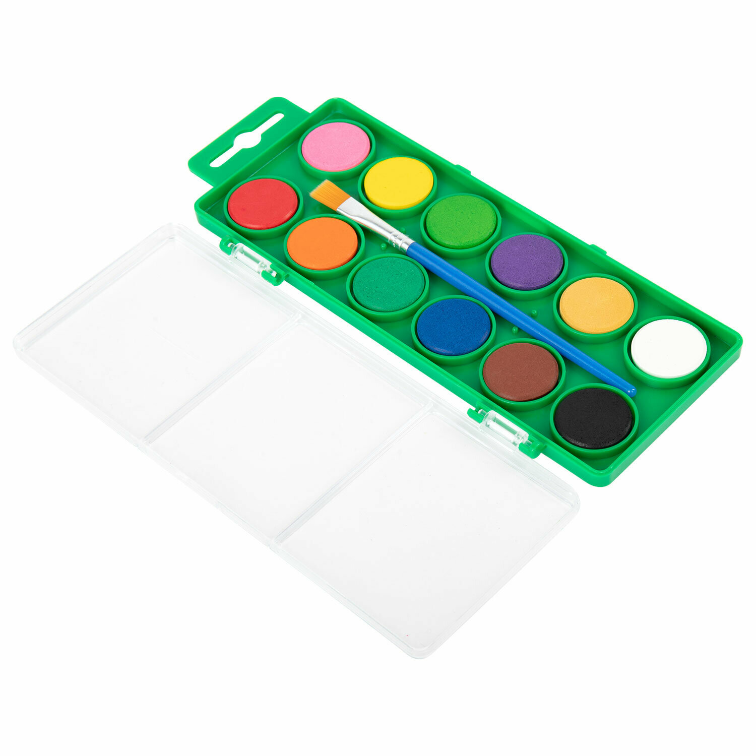 Купить Краски акварельные для рисования, акварель для школы 12 цветов в круглых кюветах, пластиковый пенал, с кистью, Brauberg Kids, 191806