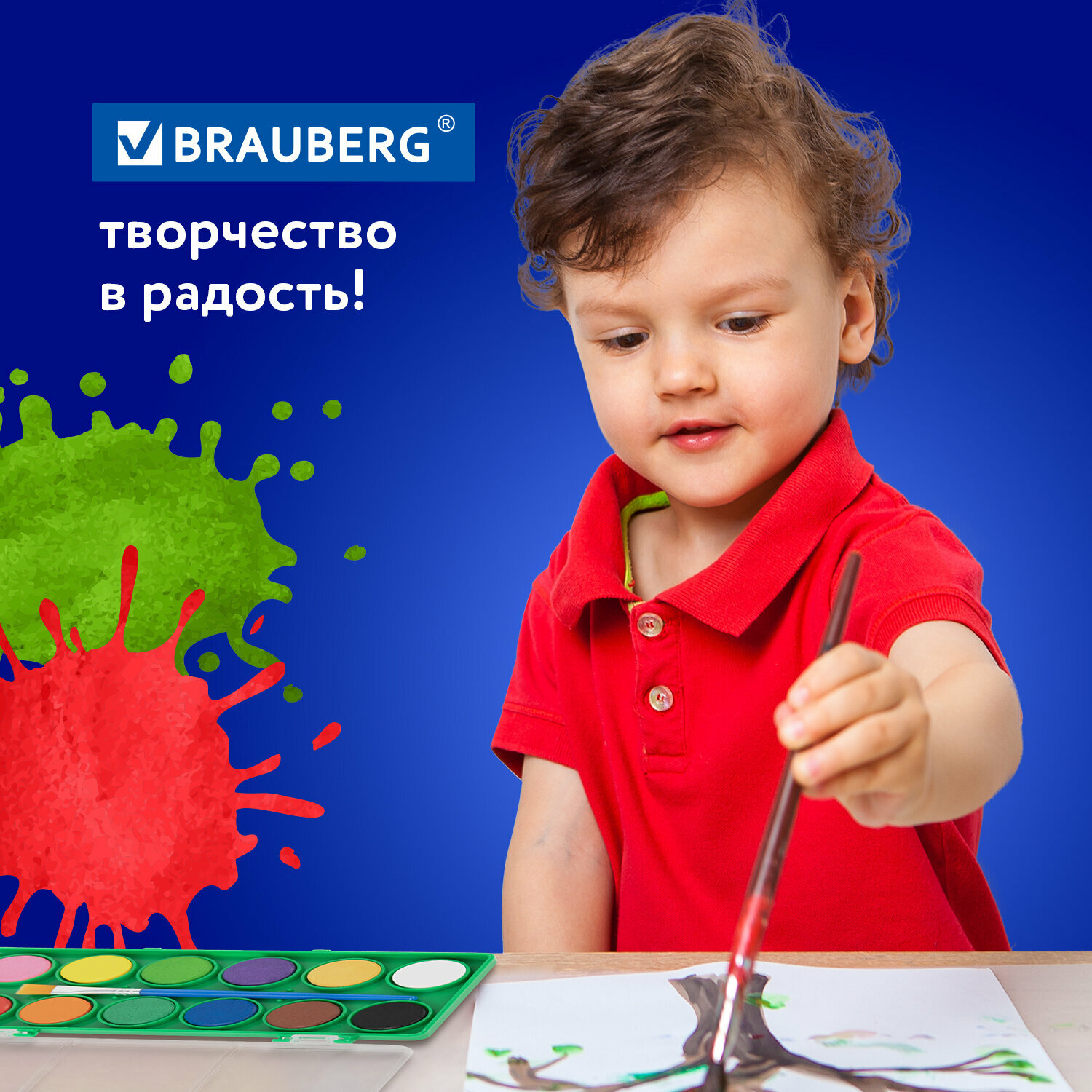 Краски акварельные для рисования, акварель для школы 12 цветов в круглых кюветах, пластиковый пенал, с кистью, Brauberg Kids, 191806 интересное: