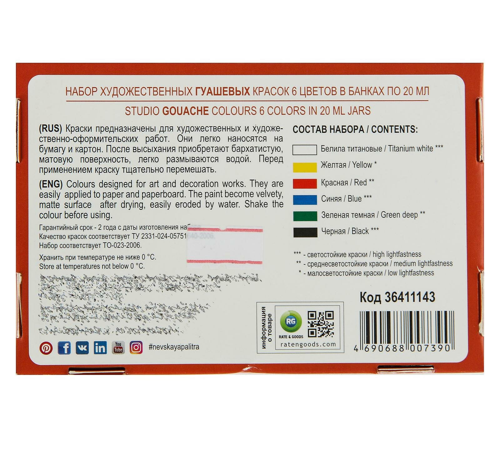 Гуашь художественная Сонет ЗХК Невская палитра, 6 цветов по 20 мл (36411143) интересное: