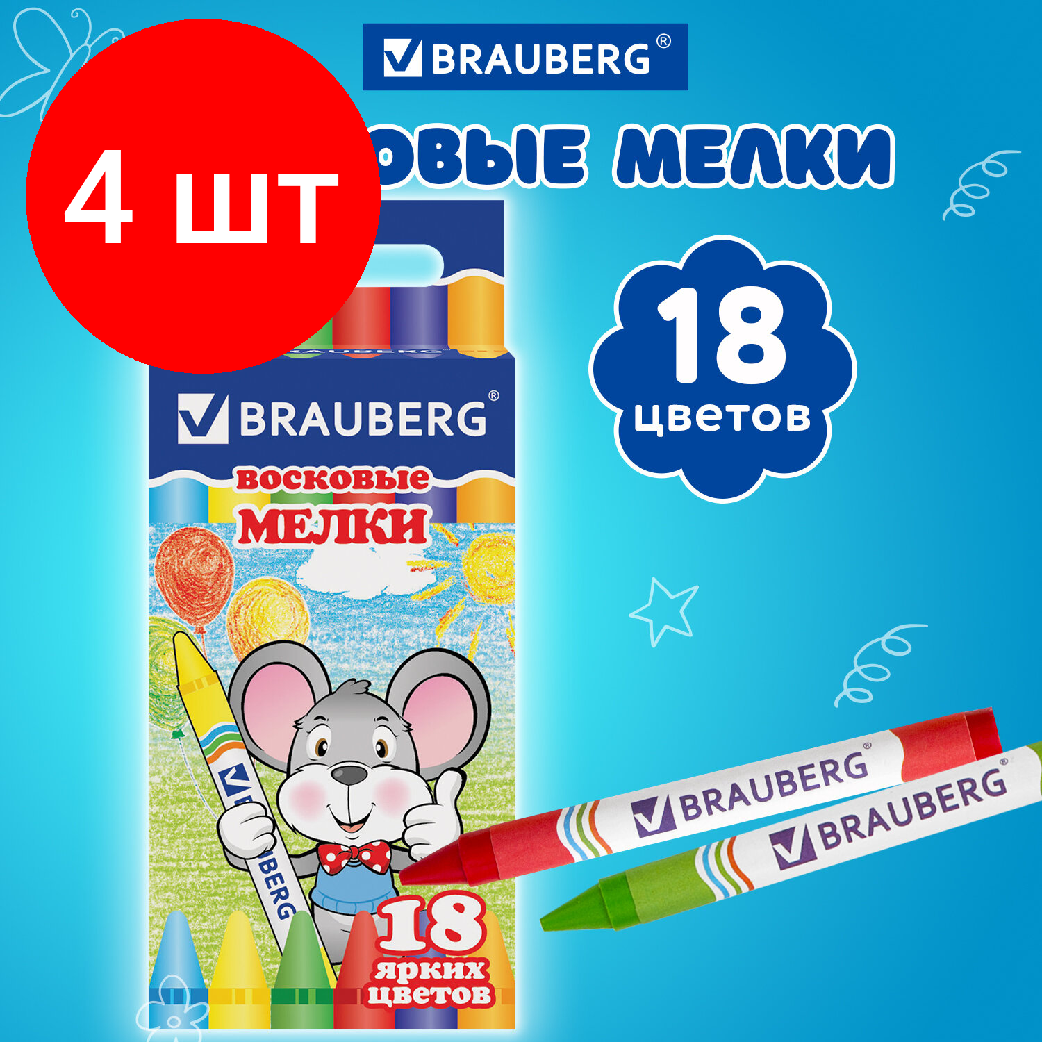 Комплект 4 шт, Восковые карандаши BRAUBERG/пифагор, 18 цветов, 222963 интересное: