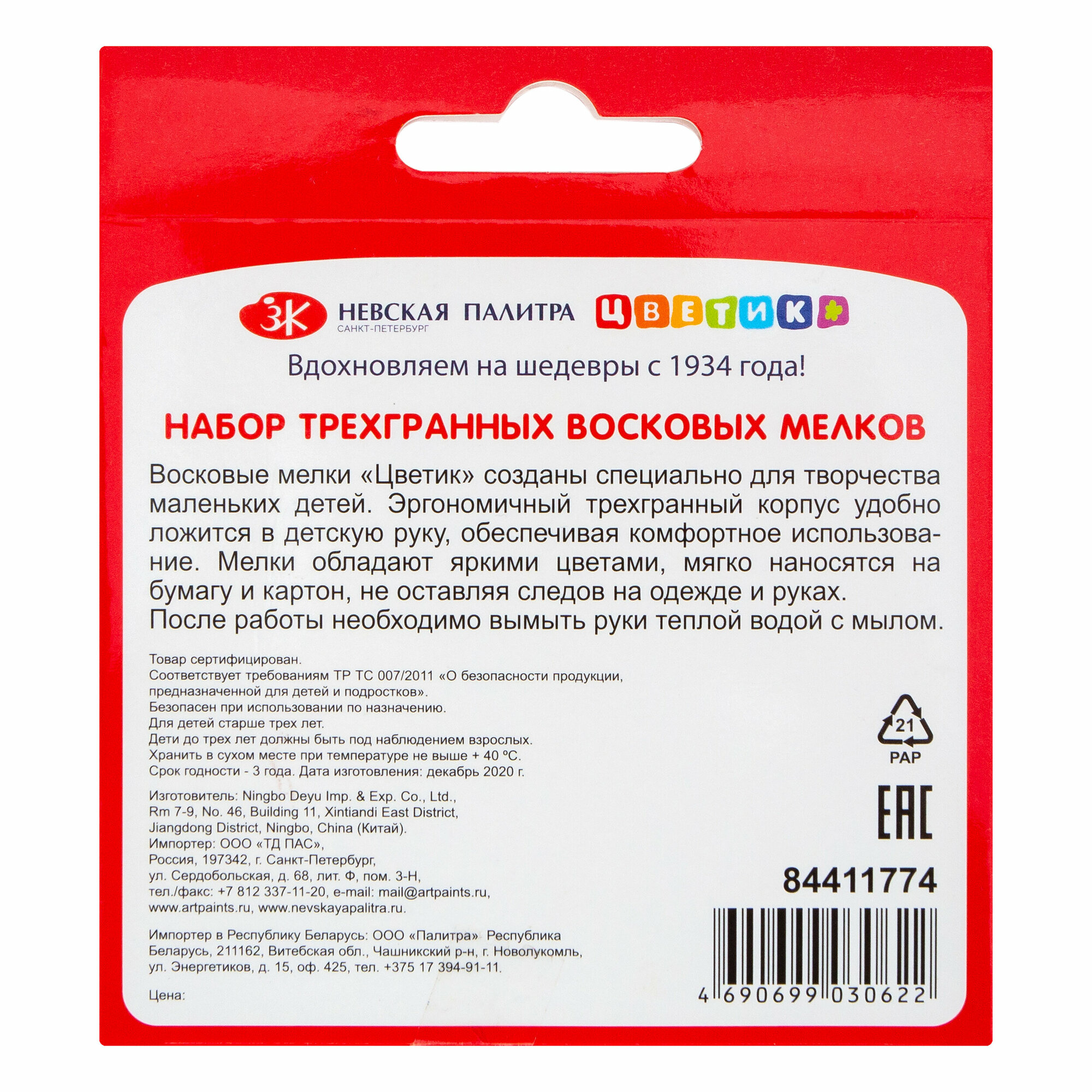 Цветик / Восковые мелки трехгранные, 12 цветов, ЗХК Невская палитра интересное: