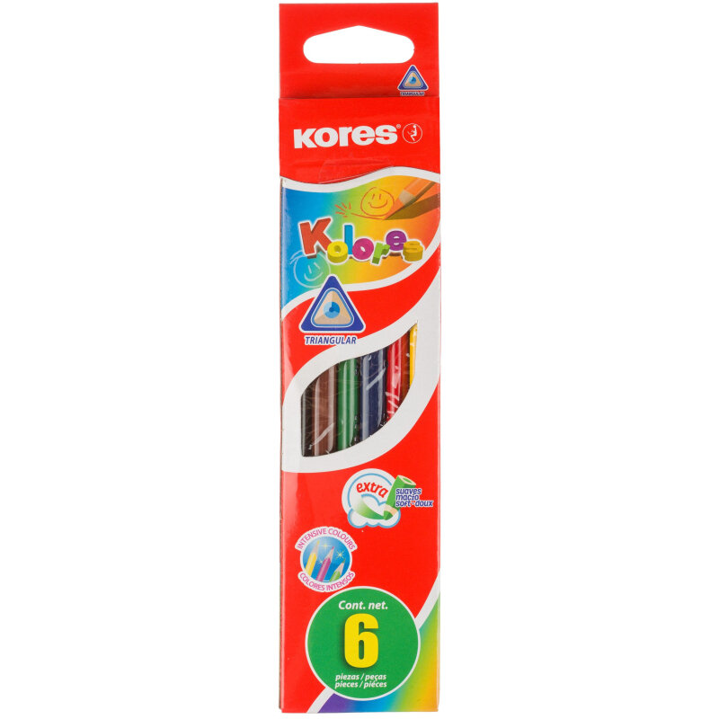 Купить Карандаши цветные Kores, трехгранные, толщина грифеля 2,9 мм, набор 6 цветов