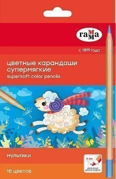 Купить Карандаши цветные Гамма "Мультики", 18цв., супермягкие, увелич. диаметр грифеля 4,0мм, заточен.