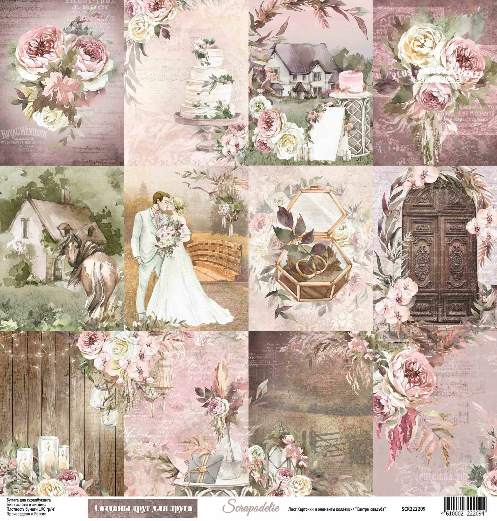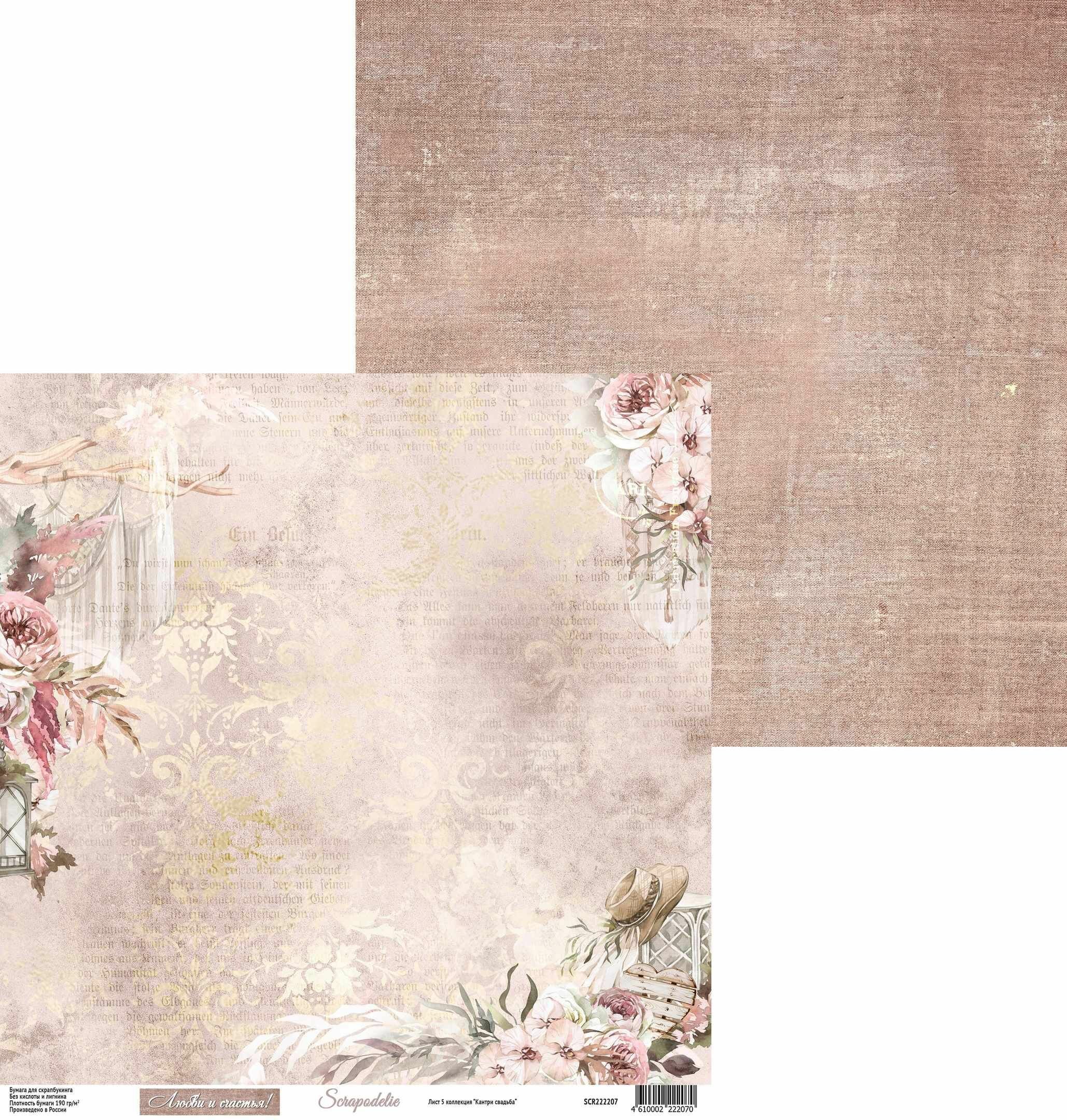 Набор бумаги "Кантри свадьба" 30x30 см для скрапбукинга от Scrapodelie интересное: