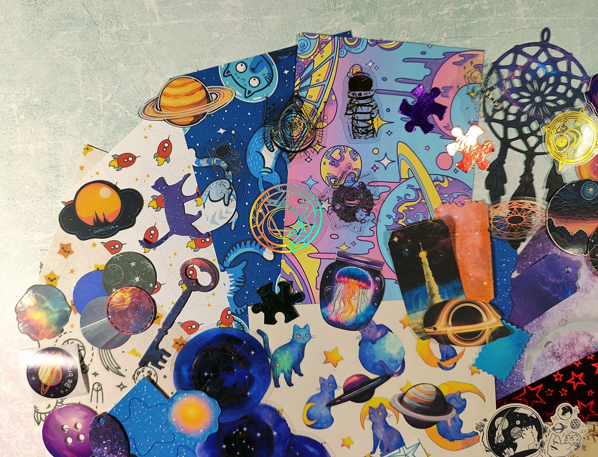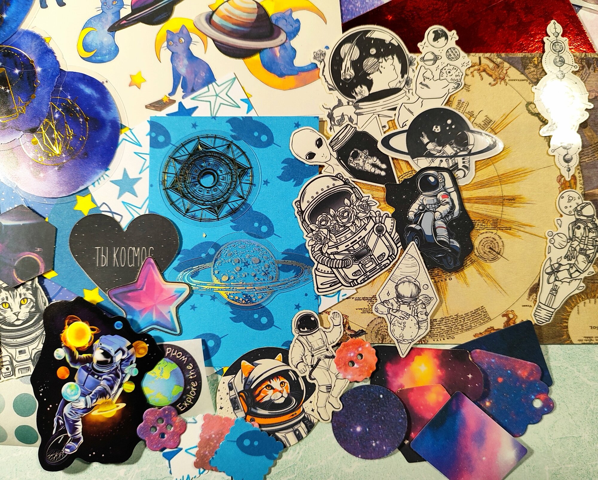 Набор для скрапбукинга "Космические приключения" из 100 различных элементов интересное: