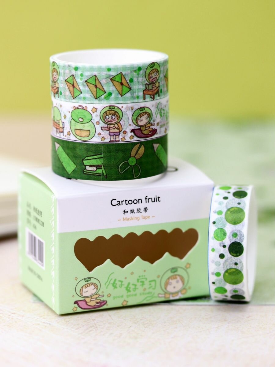 Купить Набор декоративных бумажных скотчей Fruit cartoon green