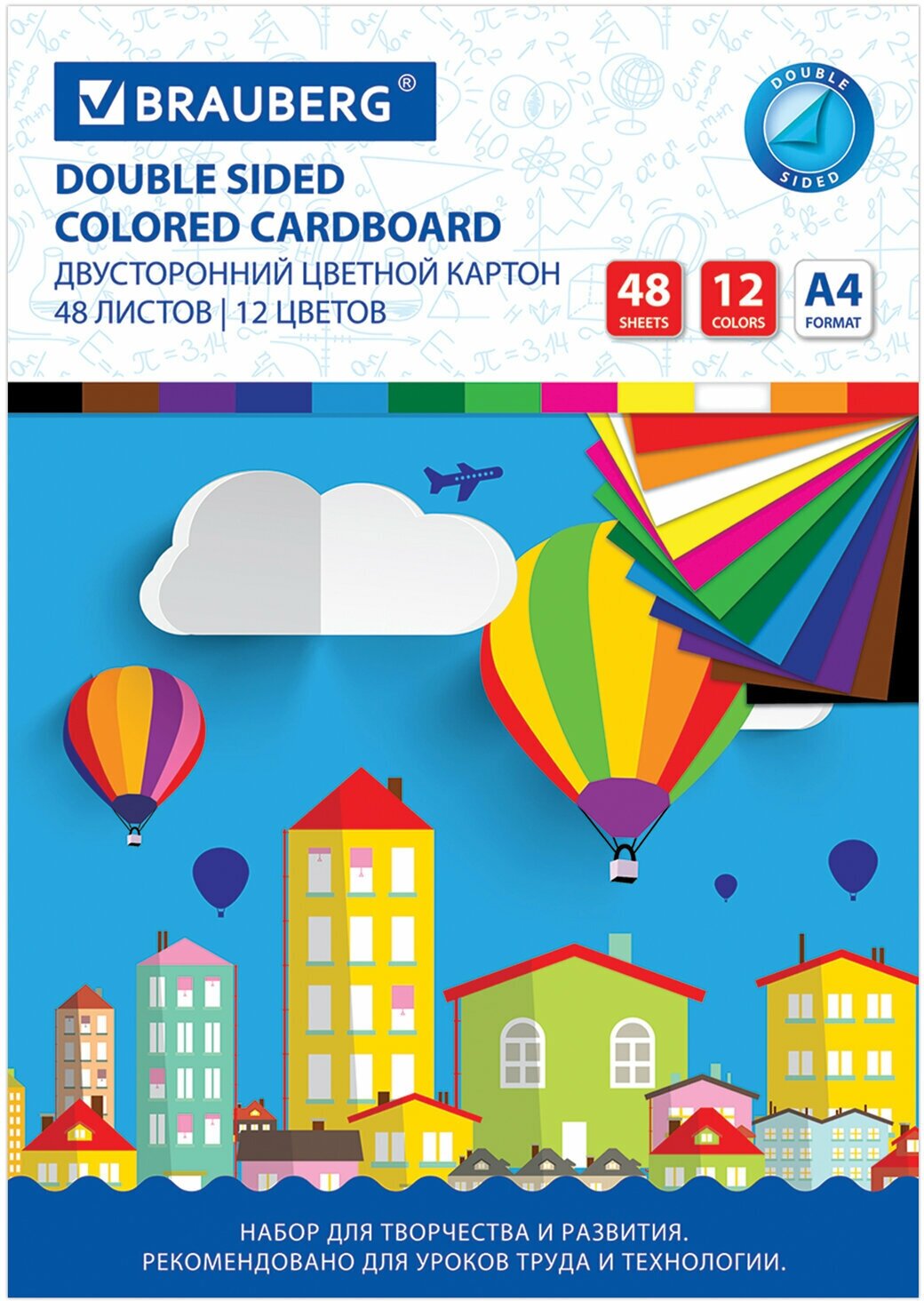 Купить Картон цветной А4 тонированный В массе, 48 листов 16 цветов (+ неон), склейка, 180 г/м2, BRAUBERG, 113507