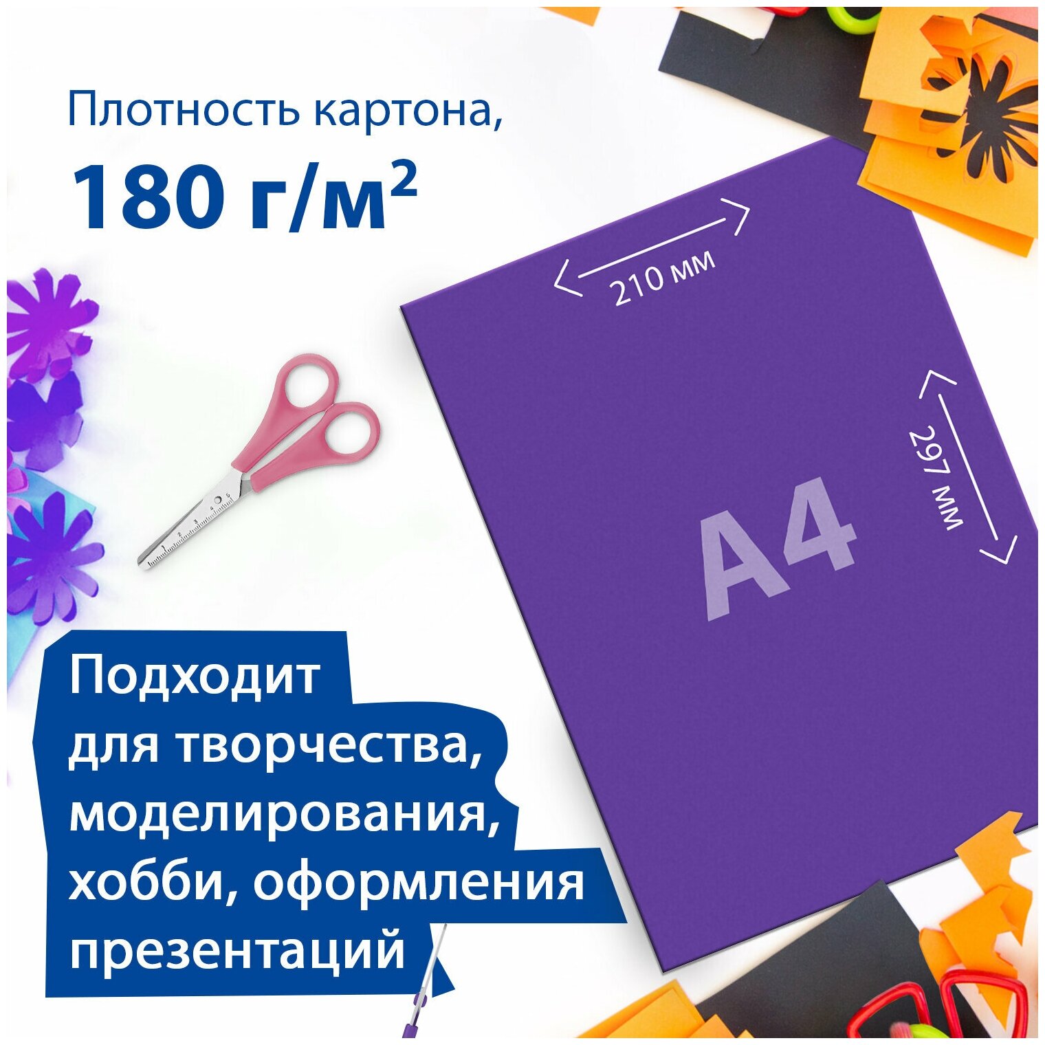 Цветной картон формата А4 тонированный в массе для творчества, набор 10 листов, 10 цветов, 180 г/м2, Brauberg, 129308