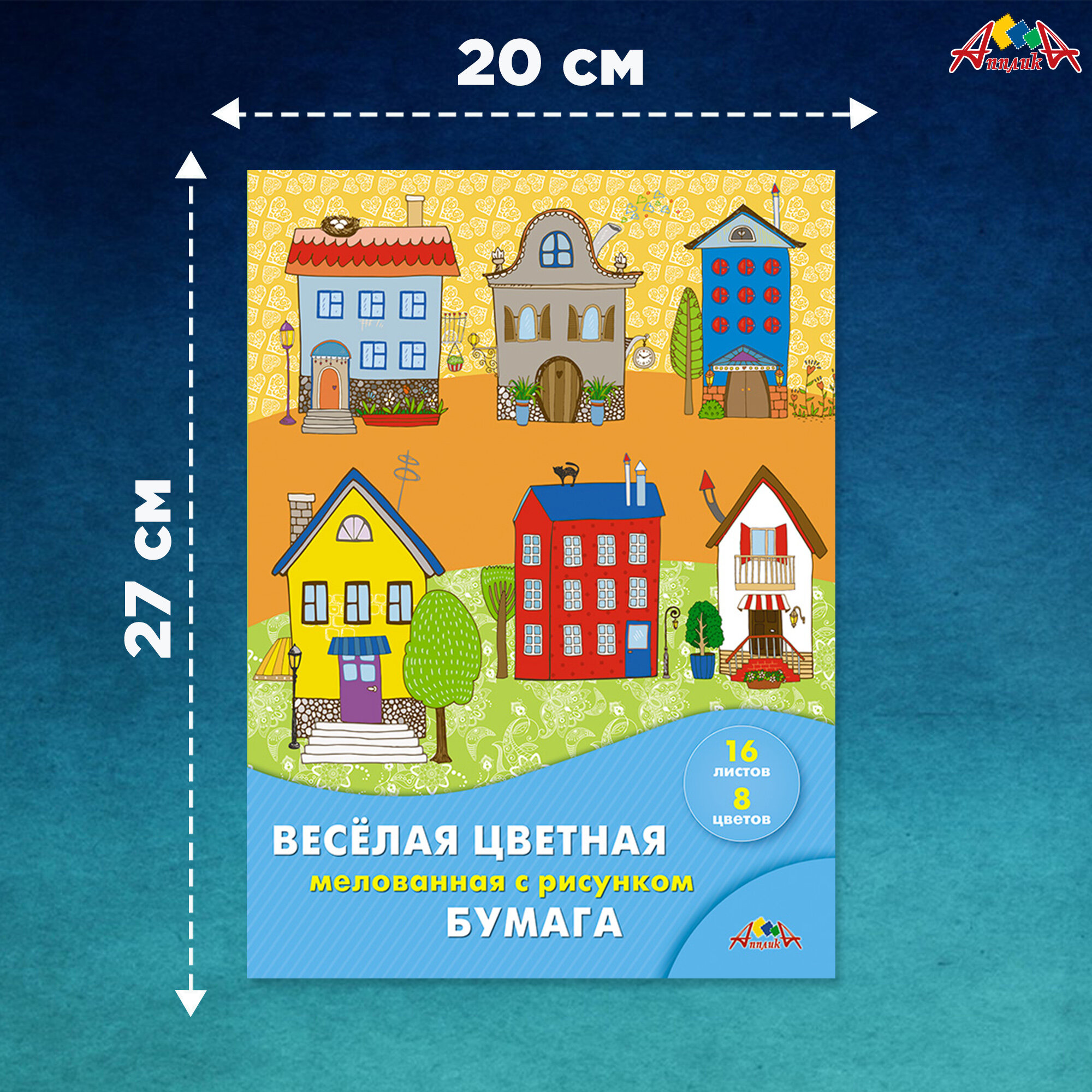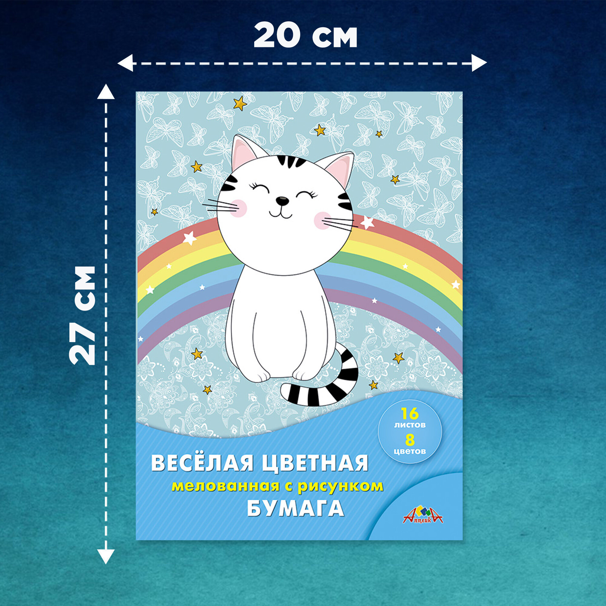 Цветная бумага а4 двухсторонняя с рисунком Апплика, мелованная, 64л в наборе, 8цв. интересное: