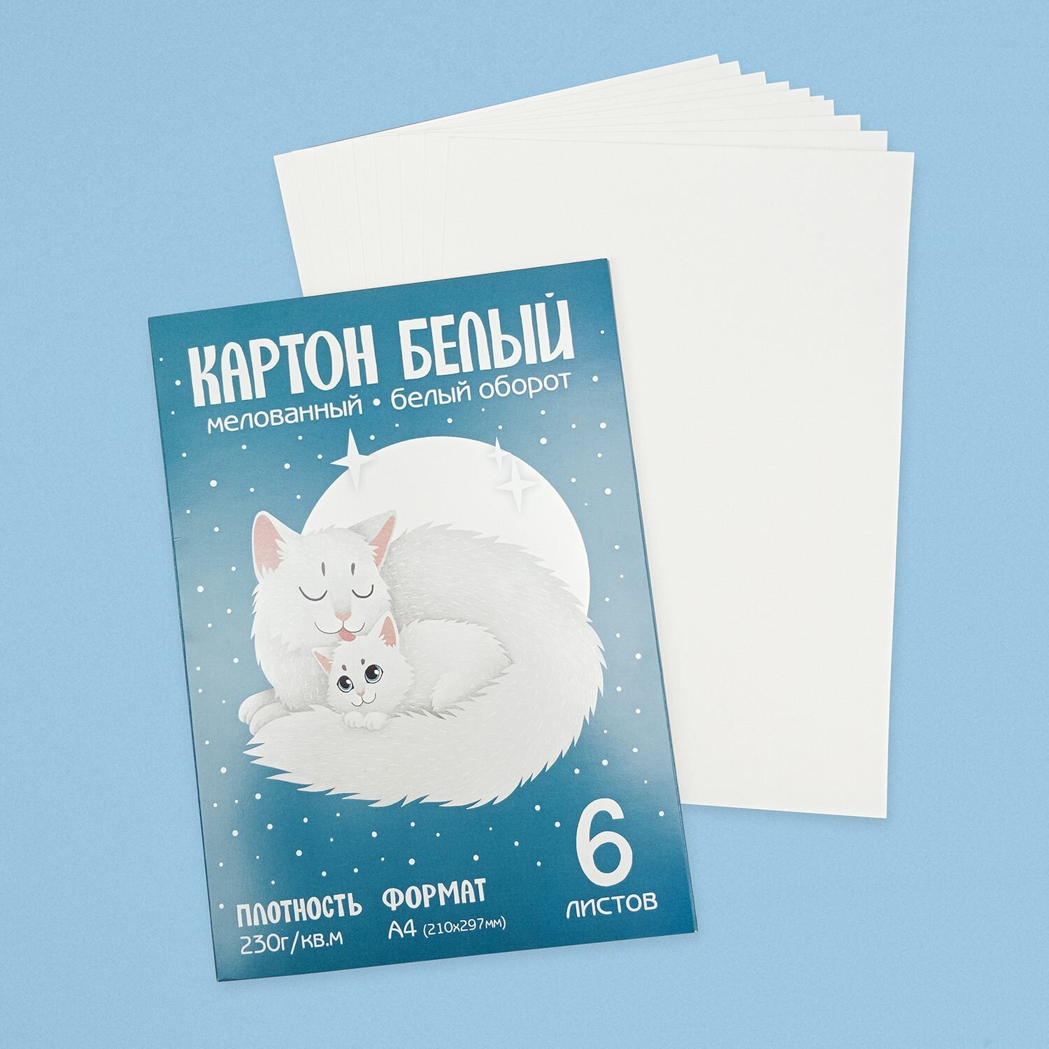 Купить Белый картон А4 230г/кв.м для творчества, мелованный, 6 листов
