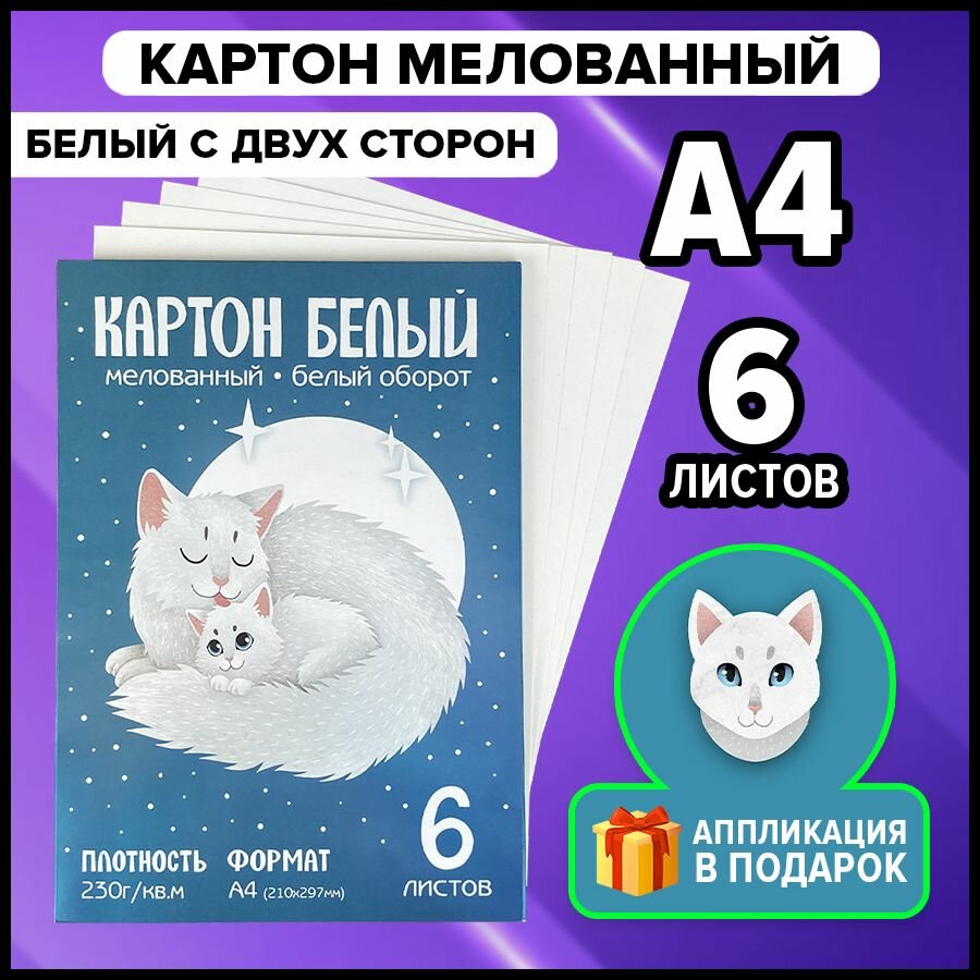 Белый картон А4 230г/кв.м для творчества, мелованный, 6 листов интересное: