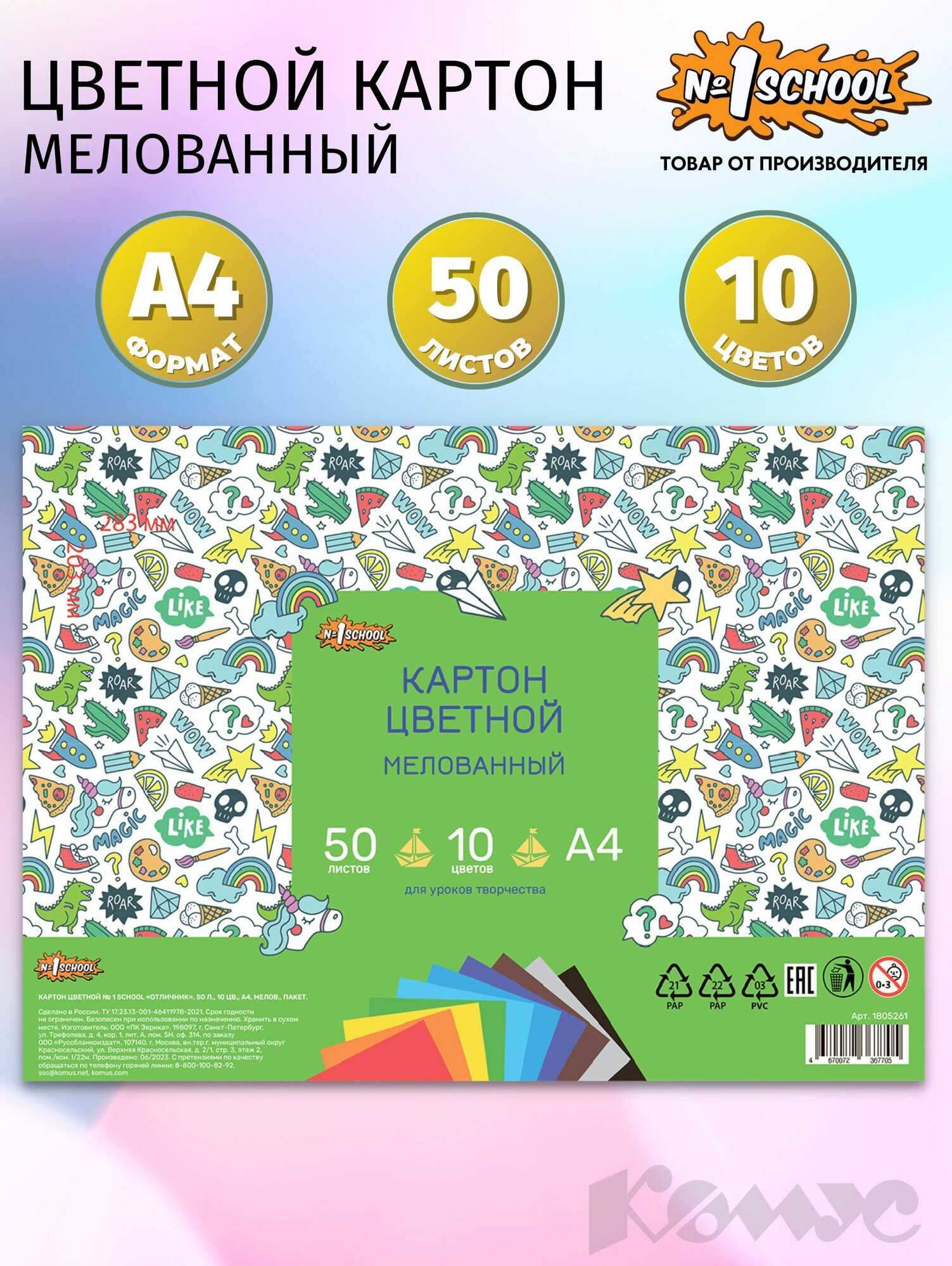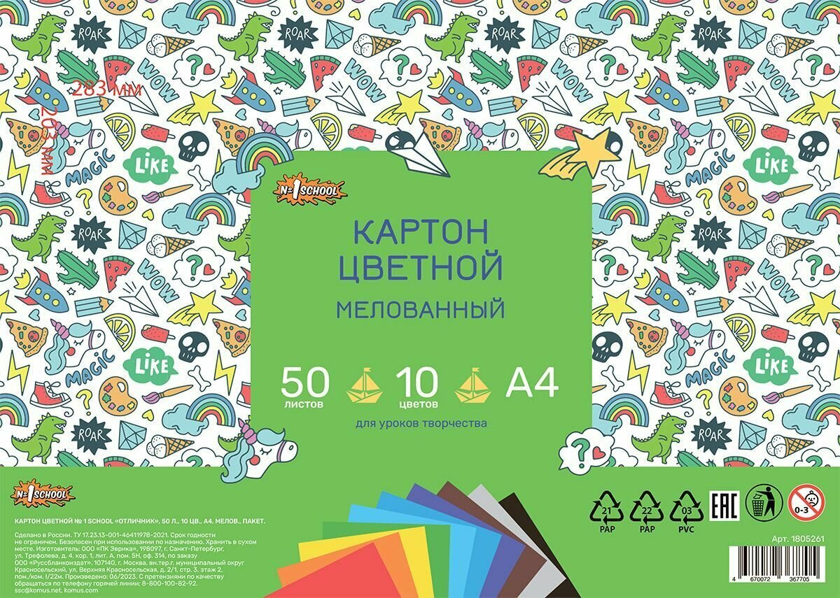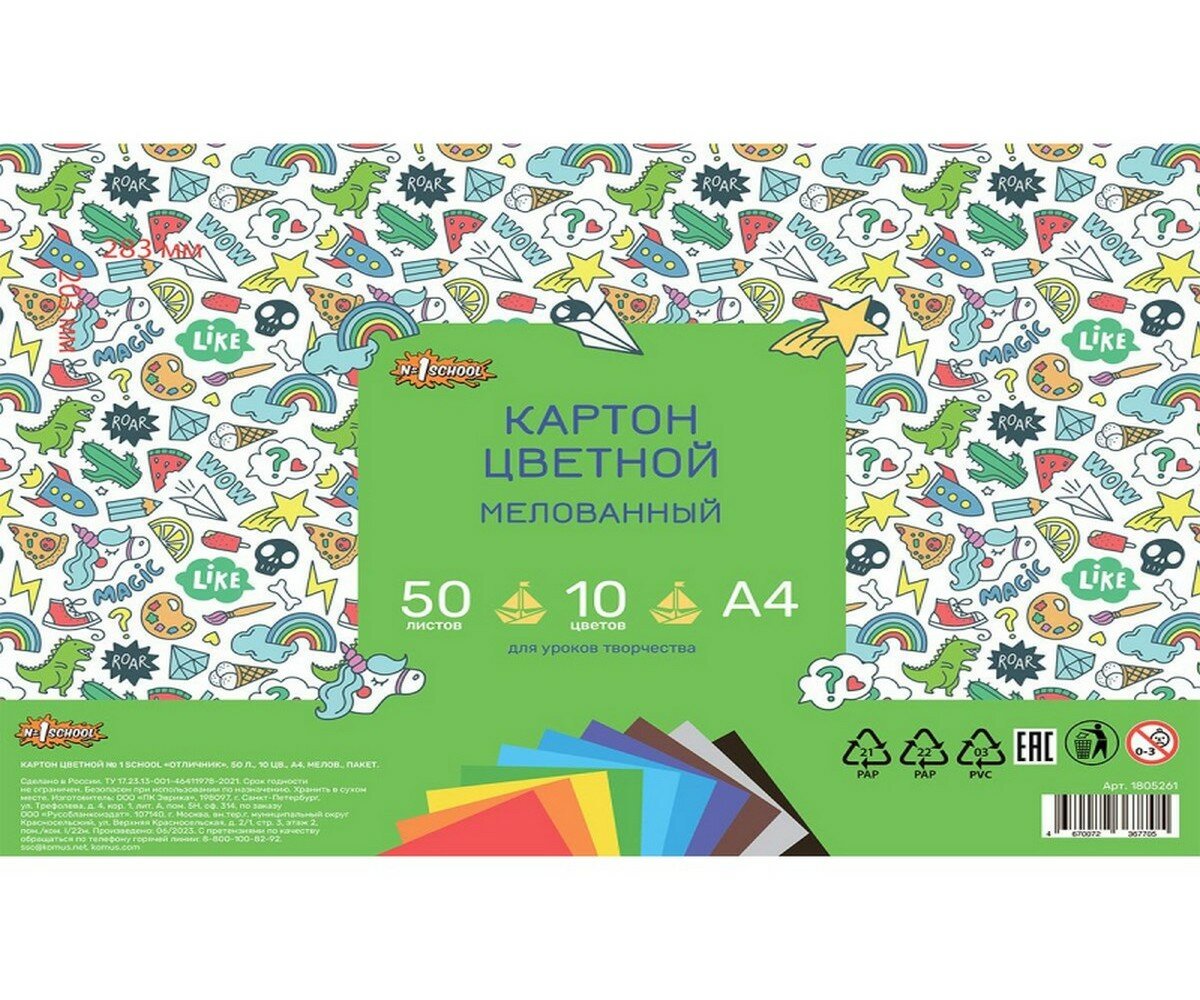 Ниже Вы можете прочитать отзывы на Цветной картон №1 School, А4, мелованный, 50 листов, 10 цветов, ознакомится с подробными характеристиками, посмотреть интересные обзоры и фотографии на Цветной картон №1 School, А4, мелованный, 50 листов, 10 цветов.