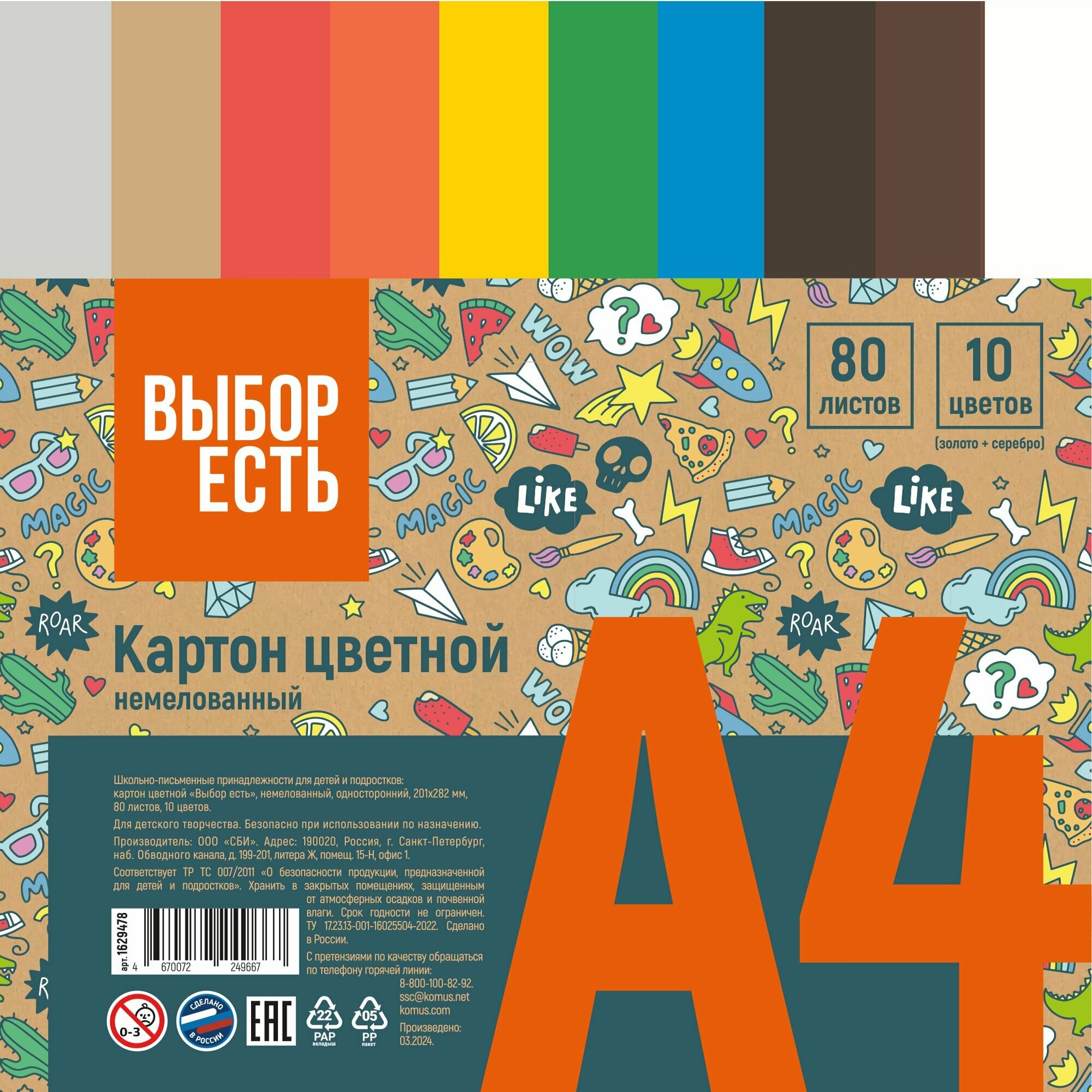 Цветной картон Выбор есть, А4, немелованный, 80 листов, 10 цветов интересное: