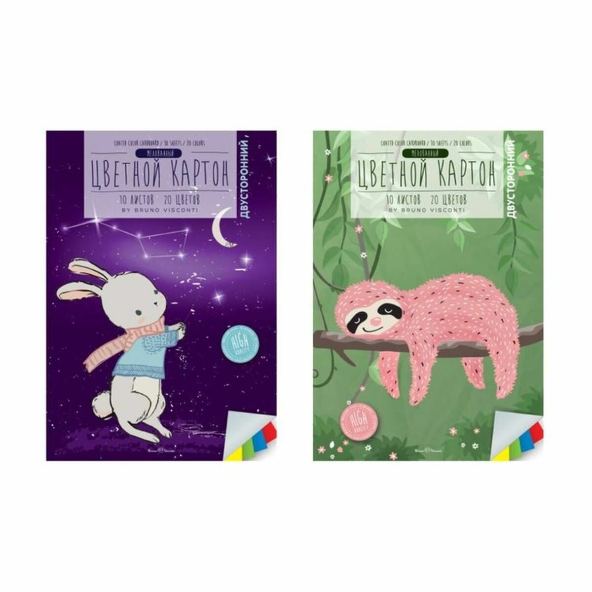 Набор цветного картона BrunoVisconti, А4 (195 х 288 мм), 10 листов, 20 цветов, 2 вида, "двусторонний", Арт. 11-410-299 интересное: