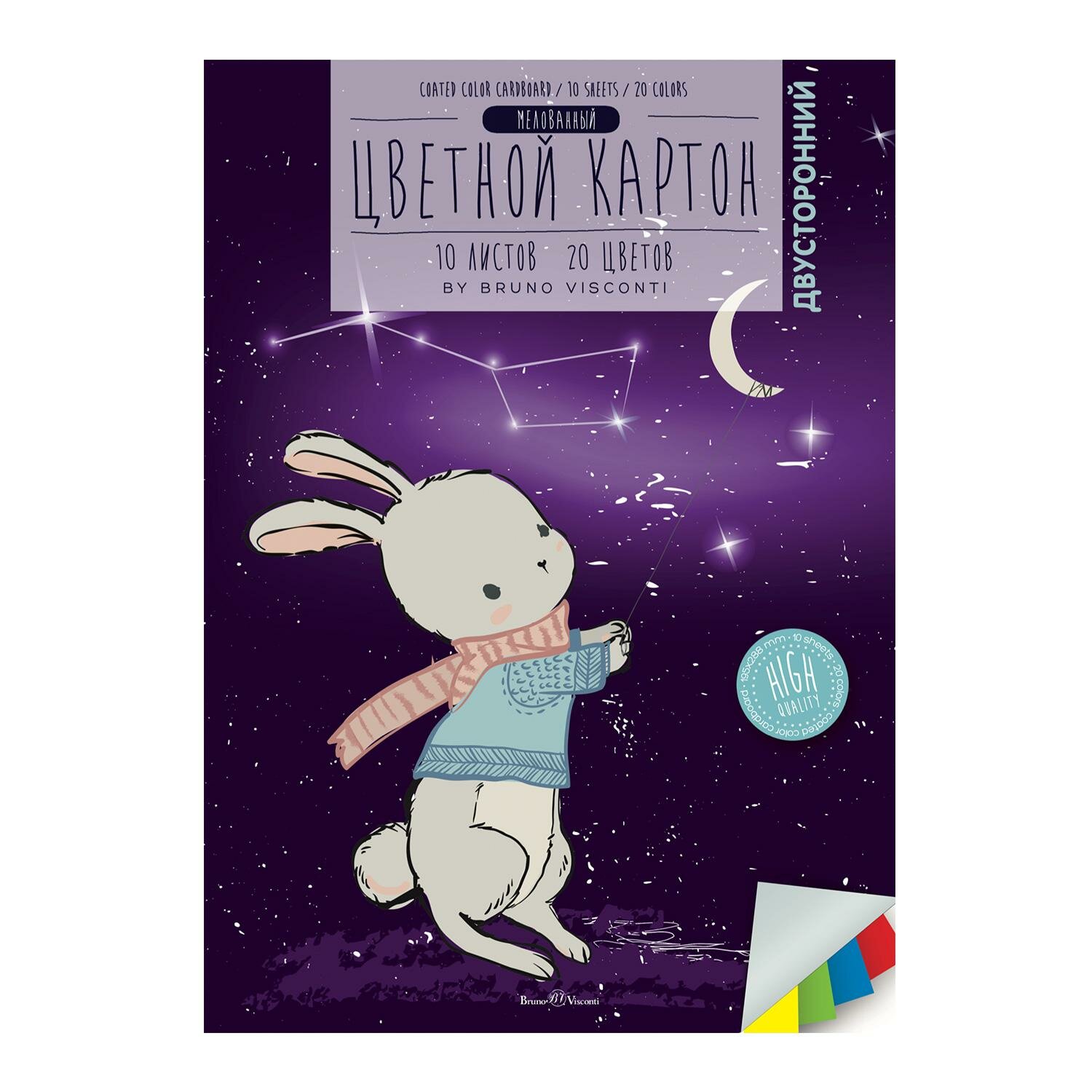 Купить Набор цветного картона BrunoVisconti, А4 (195 х 288 мм), 10 листов, 20 цветов, 2 вида, "двусторонний", Арт. 11-410-299