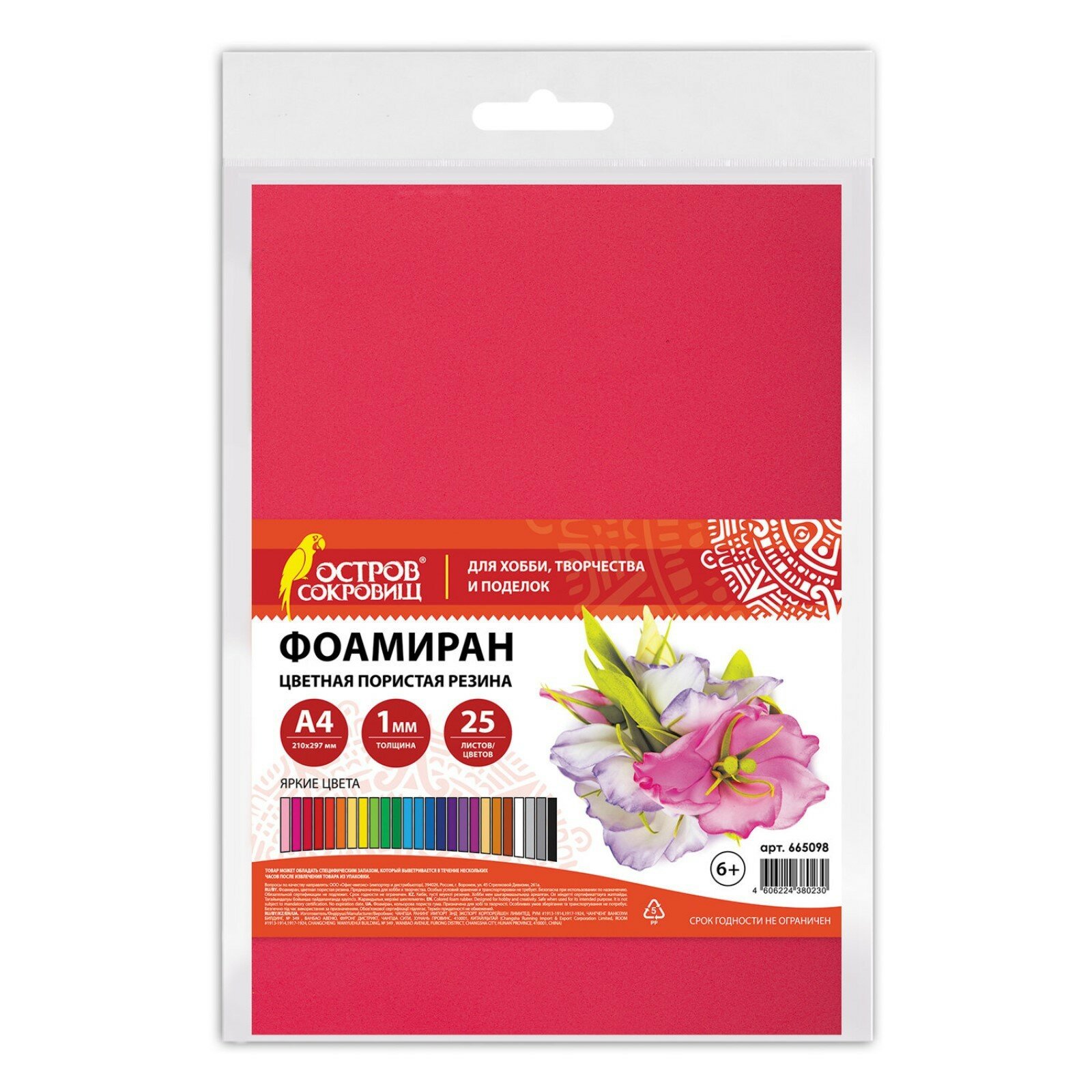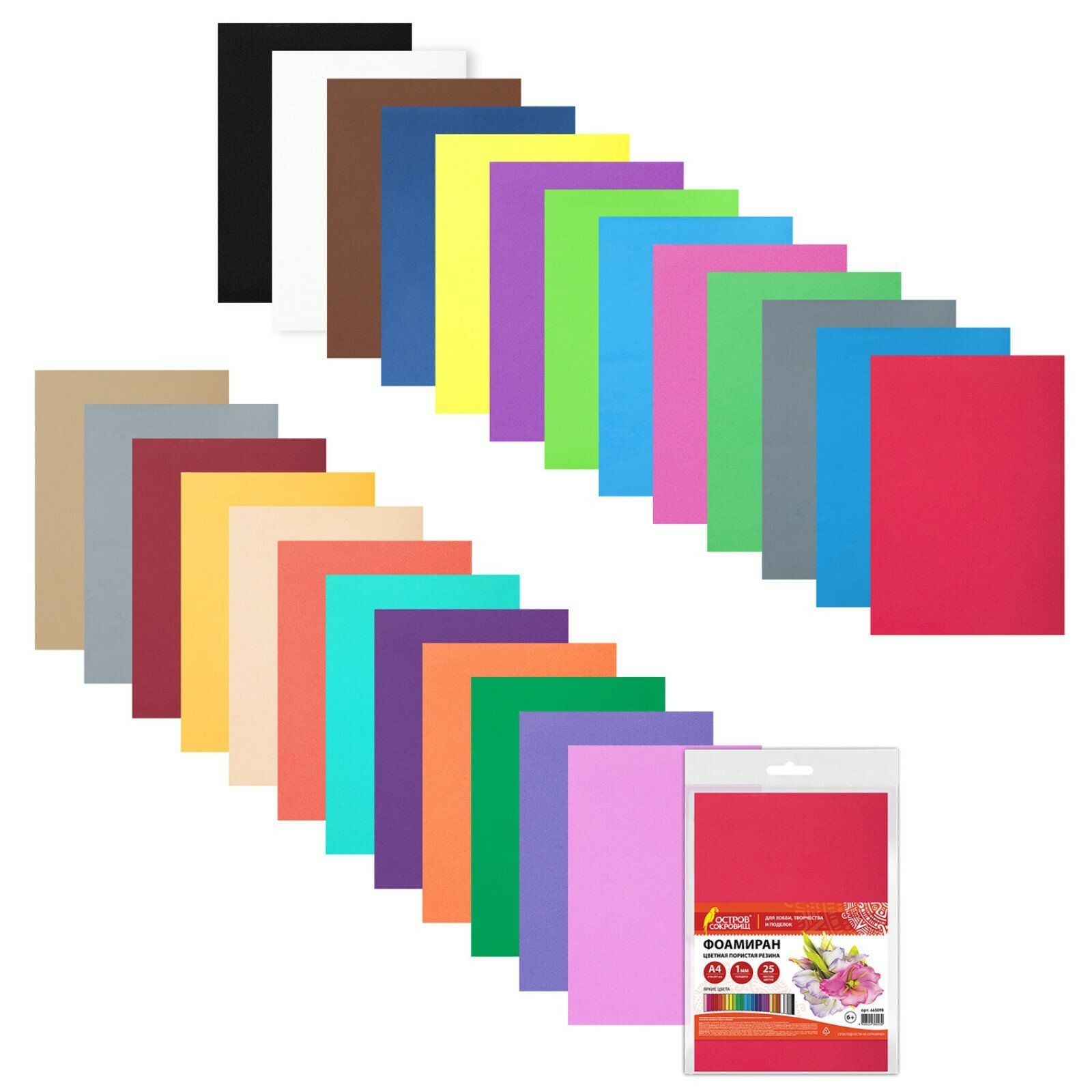 Пористая резина/фоамиран А4, 1 мм, остров сокровищ, 25 листов, 25 цветов, яркие цвета, 665098 интересное: