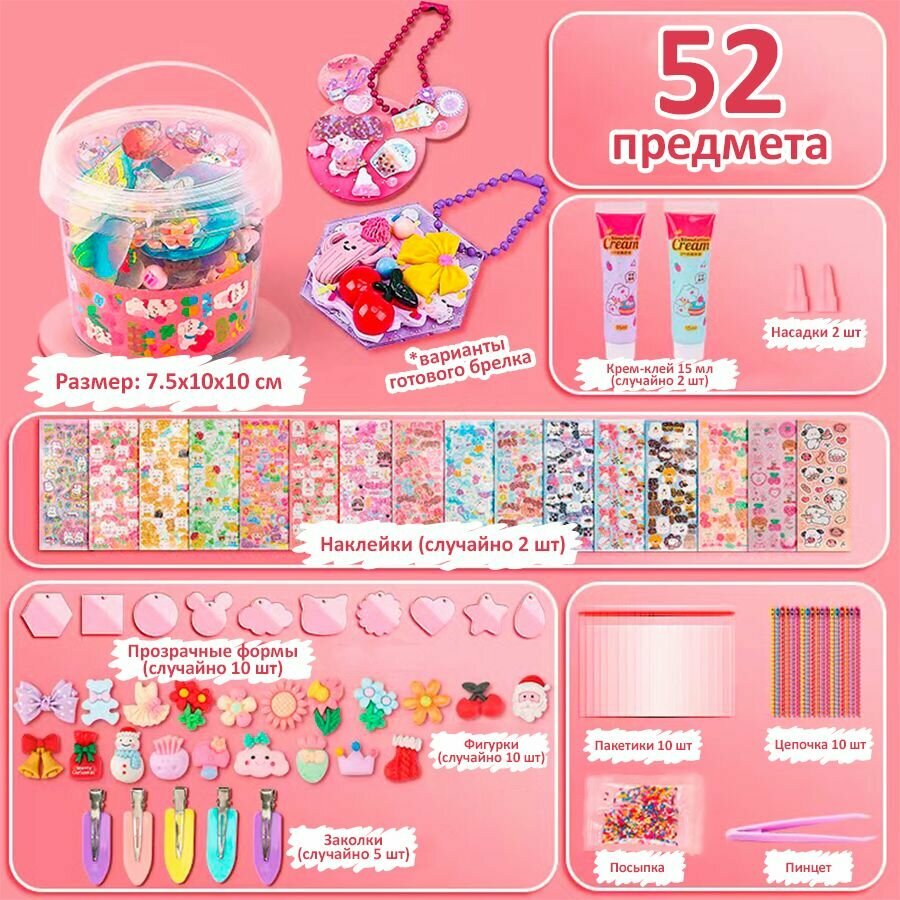 Купить Набор для творчества DIY для создания брелоков 52 предмета с крем-клеем для девочек, набор для создания украшений, подарок на 8 марта