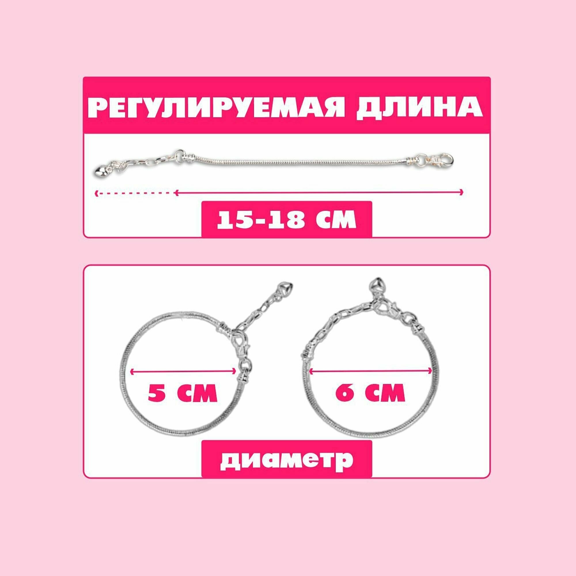| Комплектация | 4 основы для браслета; 16 металлических красочных бусин; 32 ярких цветных бусин; 12 разнообразных подвесок |