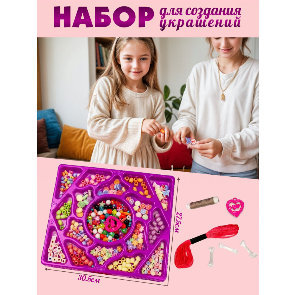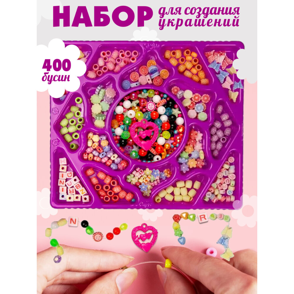 Купить Набор для творчества для девочек, создай украшение из бусин, 16 видов бусинок (более 400 шт), мулине и нитки в комплекте
