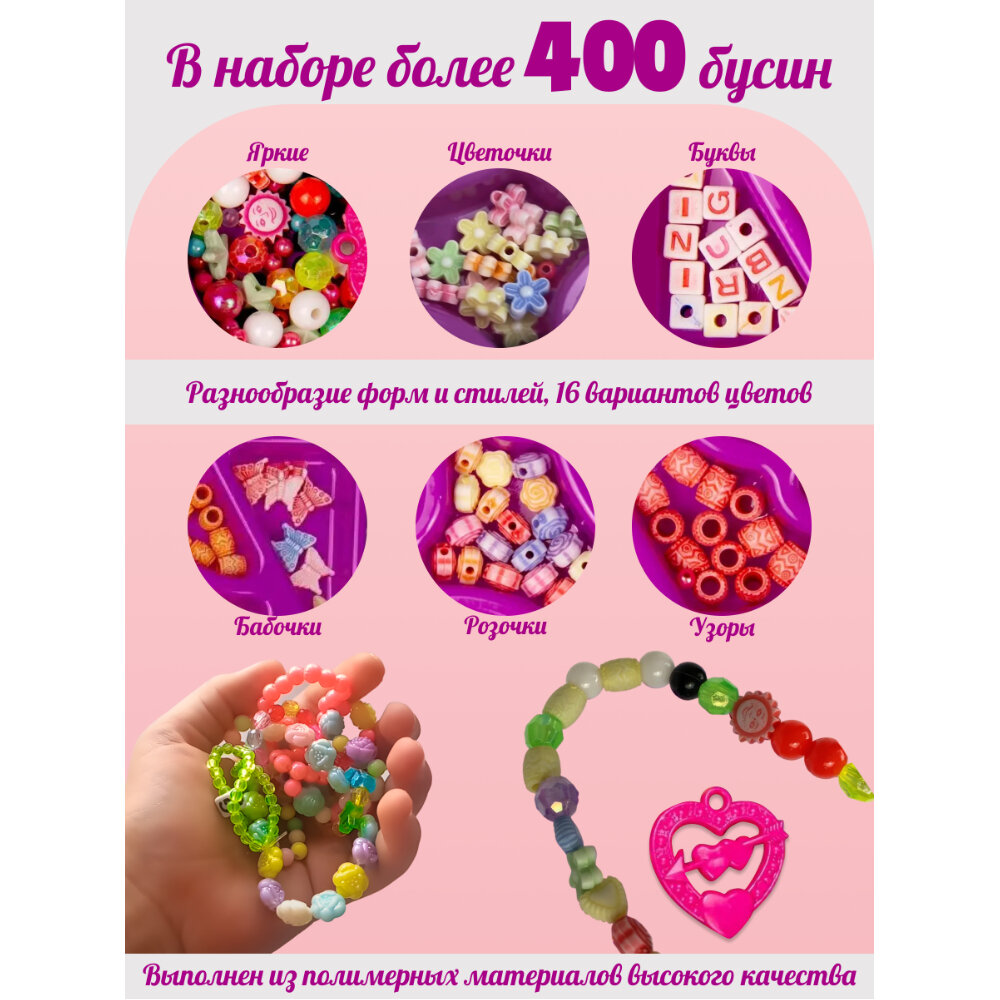 Набор для творчества для девочек, создай украшение из бусин, 16 видов бусинок (более 400 шт), мулине и нитки в комплекте интересное: