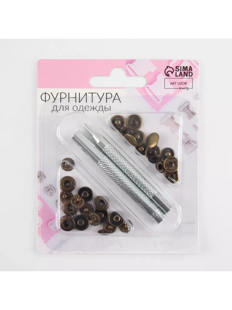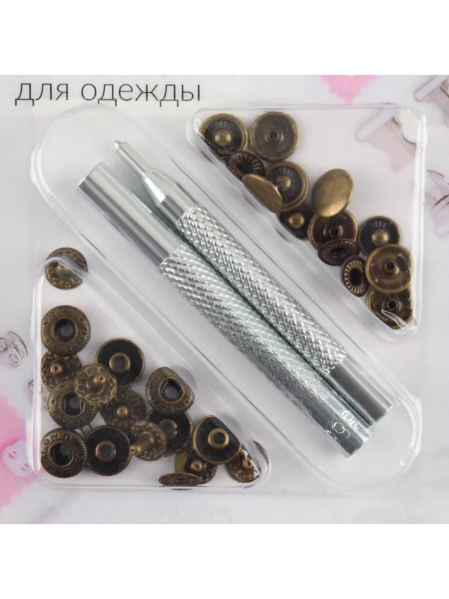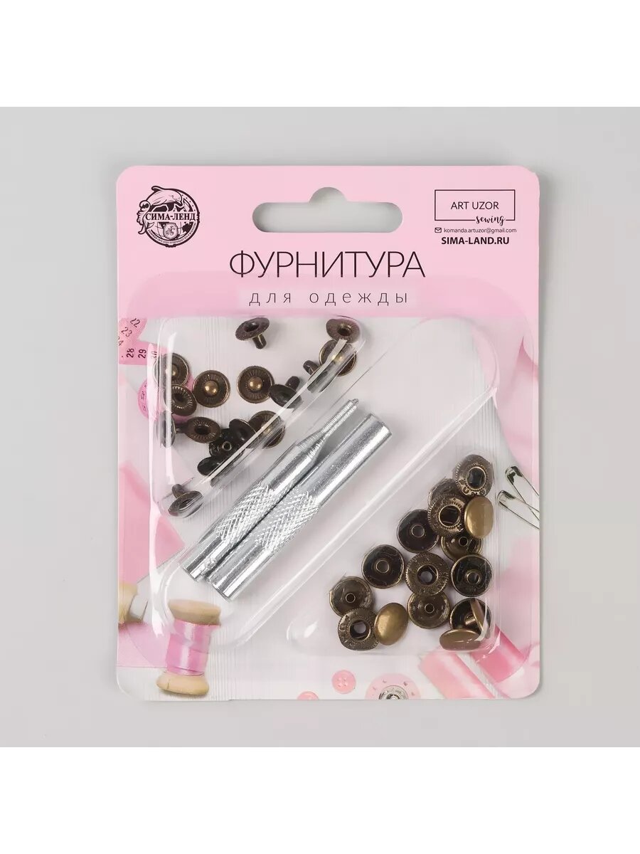Кнопки установочные, Альфа, d = 10 мм, 8 шт, с установщиком, цвет антик